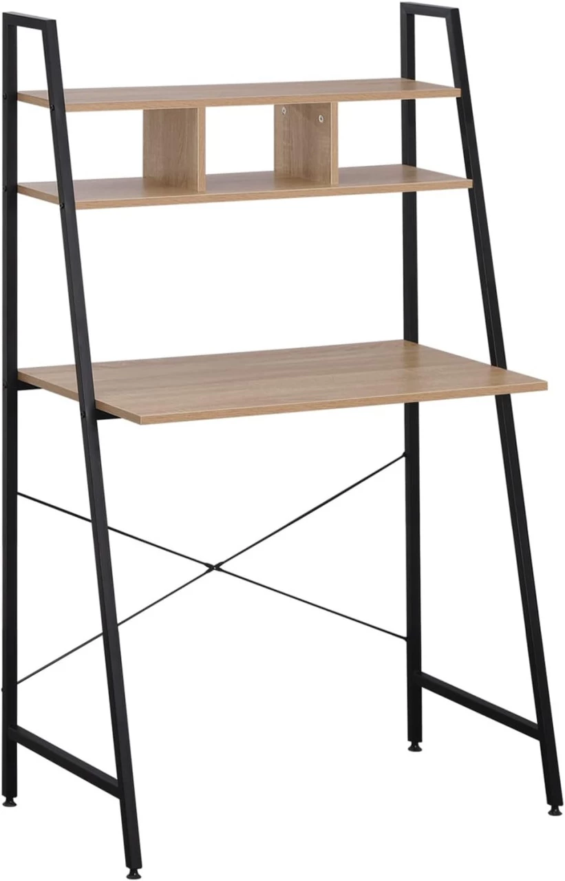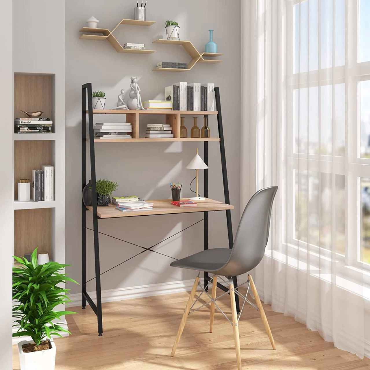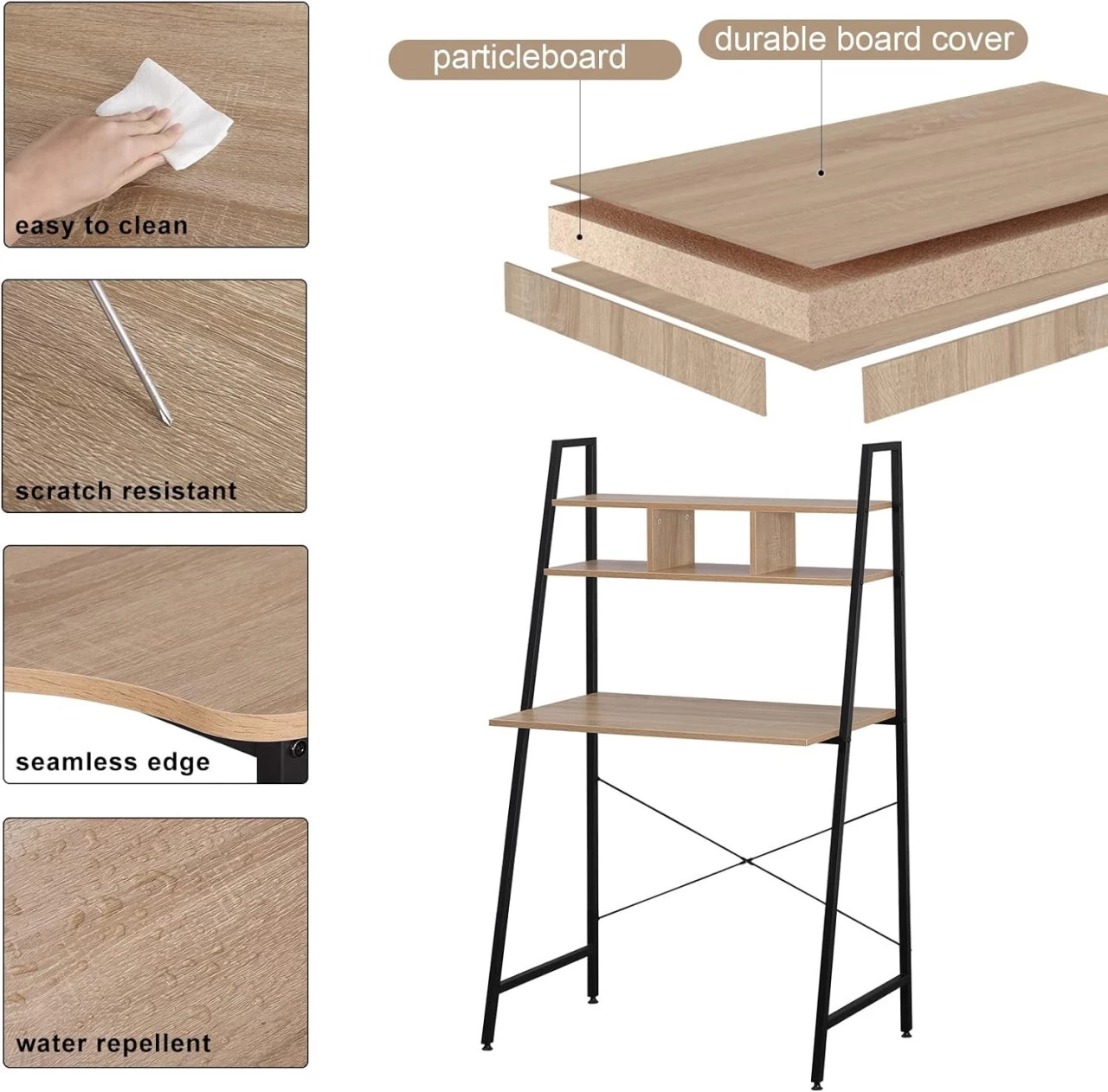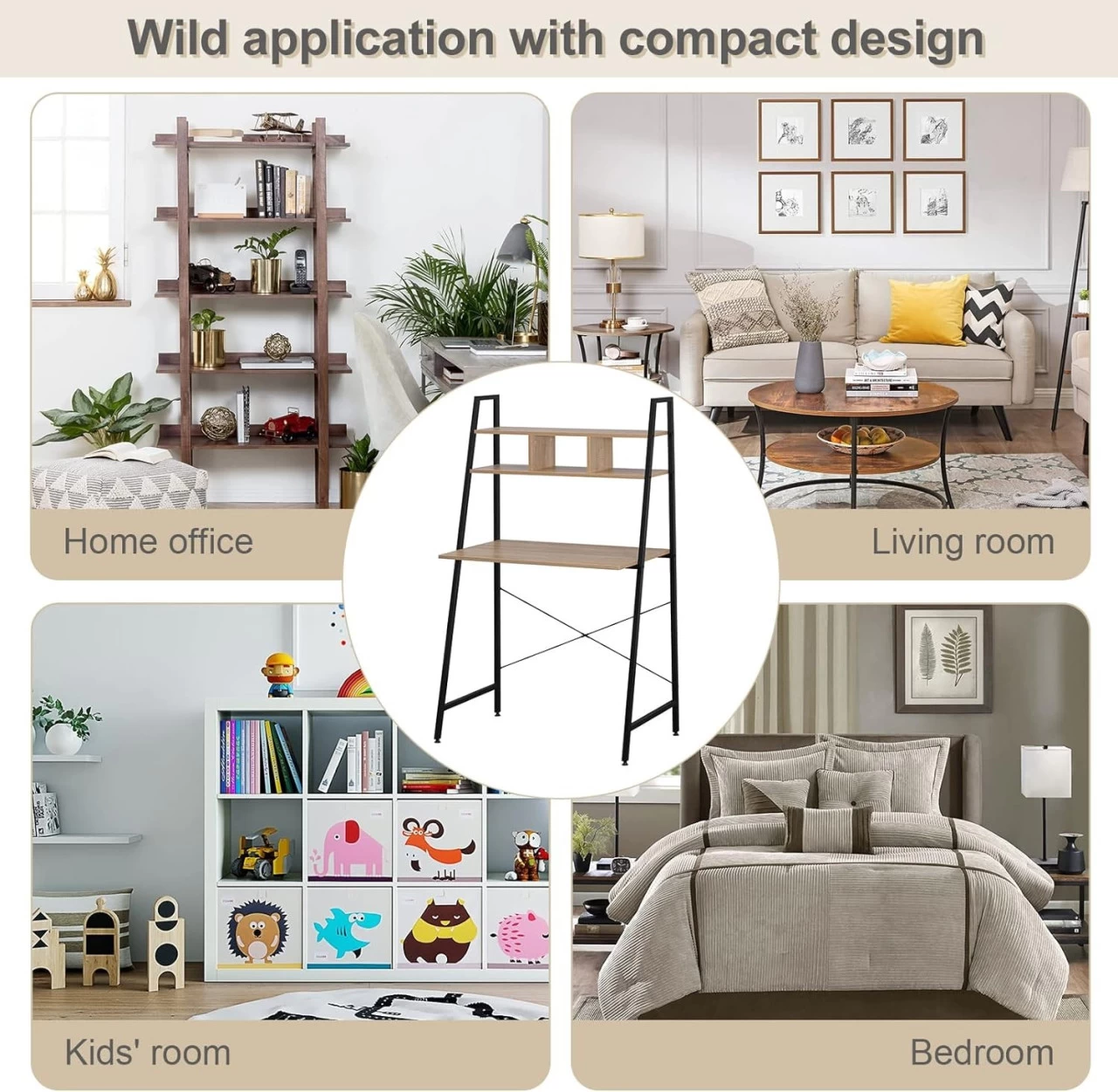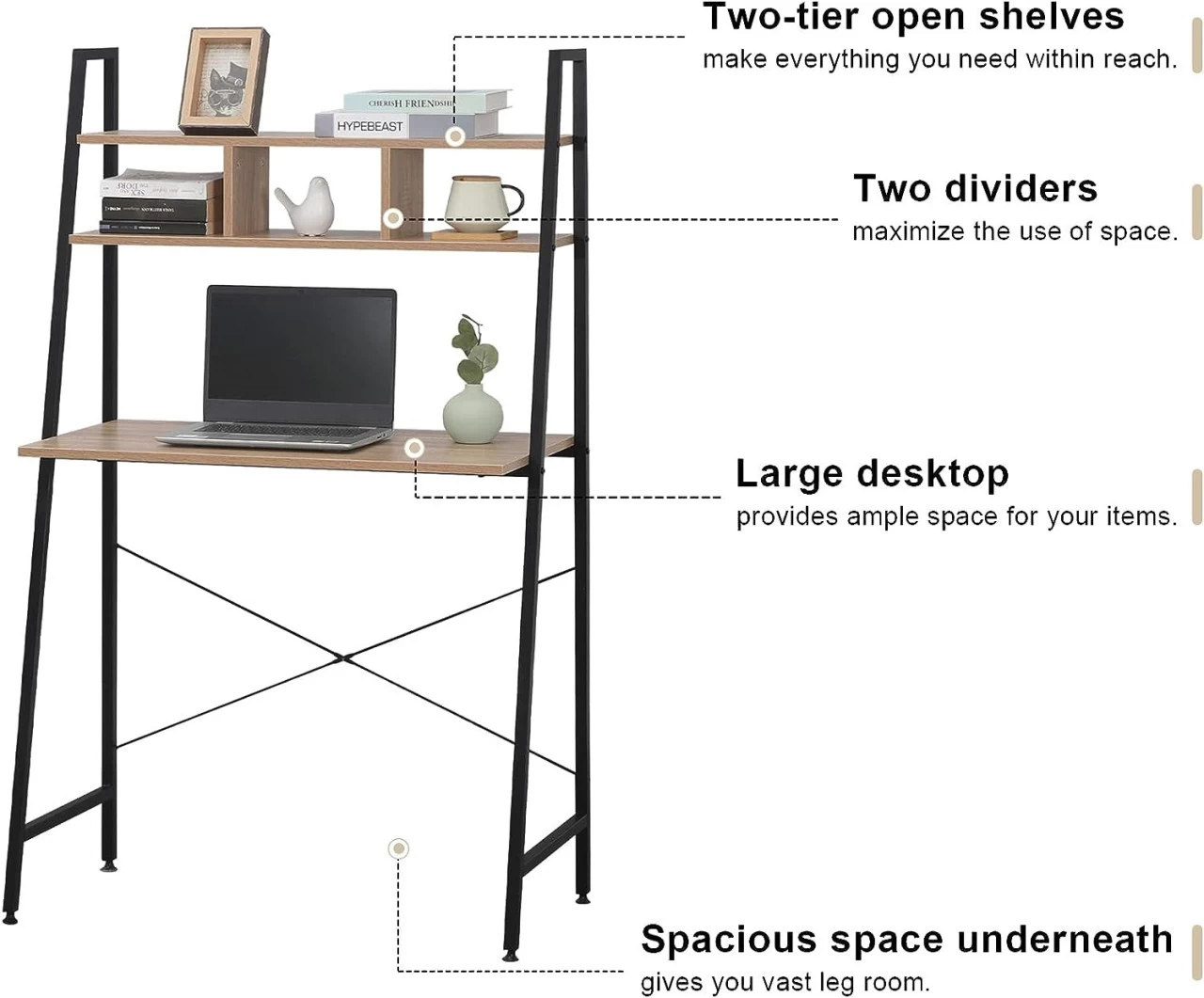 - Großer Stauraum: Ein Schreibtisch mit Mehrschichtablagen bietet ausreichend Stauraum für Büromaterial oder Schulbedarf wie Schreibwaren, Bücher und Dokumente. Die obere Ablage kann auch zum Platzieren von Bilderrahmen, kleinen Pflanzen und anderen Dekorationen verwendet werden. Die abgetrennten Bereiche können die Dinge organisierter machen