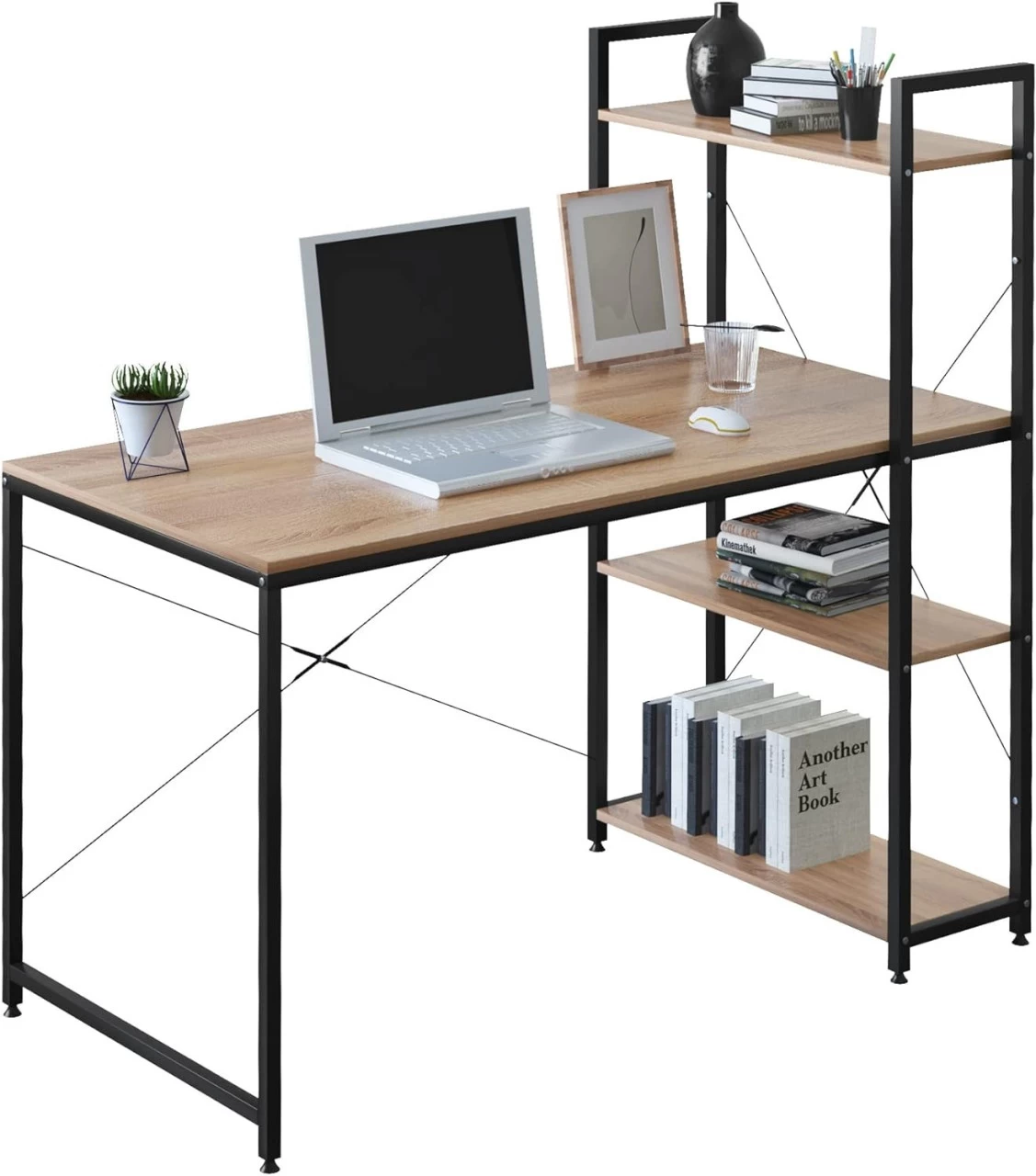 - VIEL STAURAUM: Der Tisch hat eine breite Platte (120×60 cm) und 4 offene Etagen, bietet viel Platz für Monitore, Laptops, Tastaturen, Büromaterialien, Bücher, Dokumente. Tiefe von 60 cm sorgt für einen angenehmen Abstand zwischen Augen und Bildschirm.