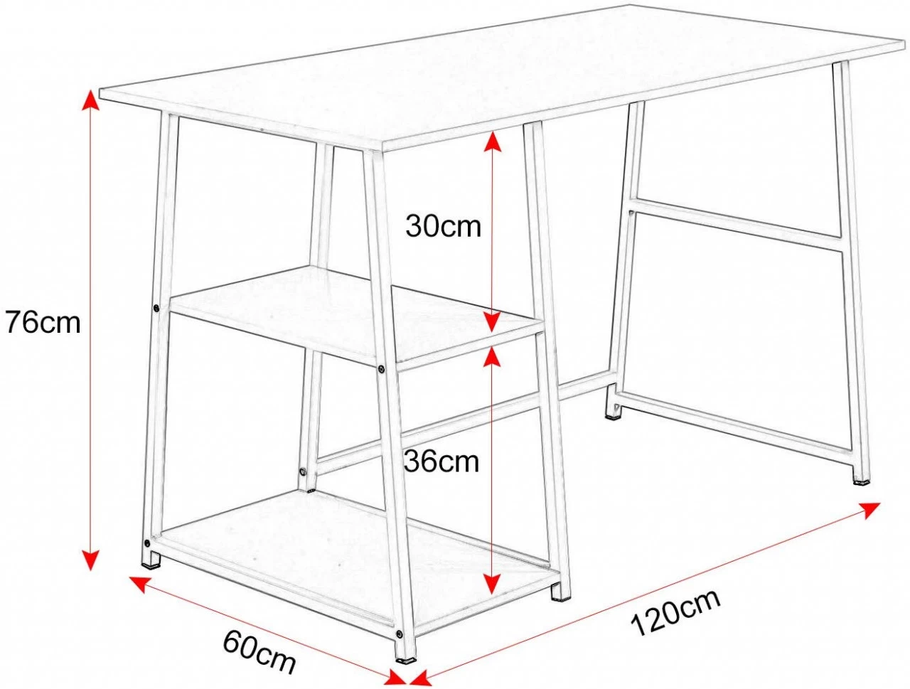 - Maße: Tischplatte: 120x60cm(BxT); Höhe: 76cm; Maximale Belastung: 25kg; ACHTUNG: Die Regale sind links oder rechts montierbar.