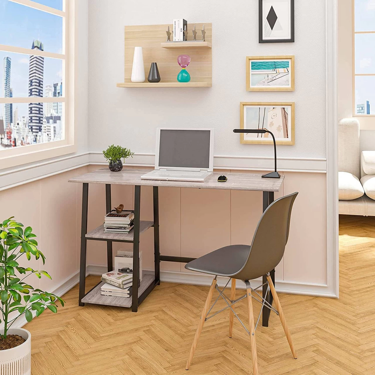 Geräumiger Stauraum: Neben der geräumigen Tischplatte verfügt dieser Schreibtisch mit über Ablageregale, auf denen Bücher, kleine Dekorationen, Aufbewahrungsboxen und anderen Dinge platziert werden können.