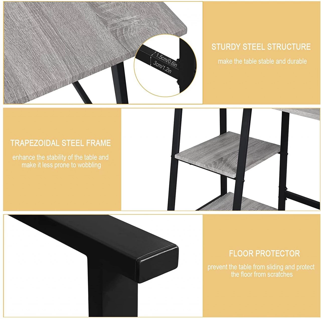 - Robuste Struktur: Die Kombination aus Stahlgestell und Holzwerkstoff macht den Tisch robust und stabil. Die trapezförmige Struktur mit dem oberen kleinen Teil und dem unteren großen Teil erhöht die Stabilität des Tisches und macht den Tisch nicht leicht zu wackeln