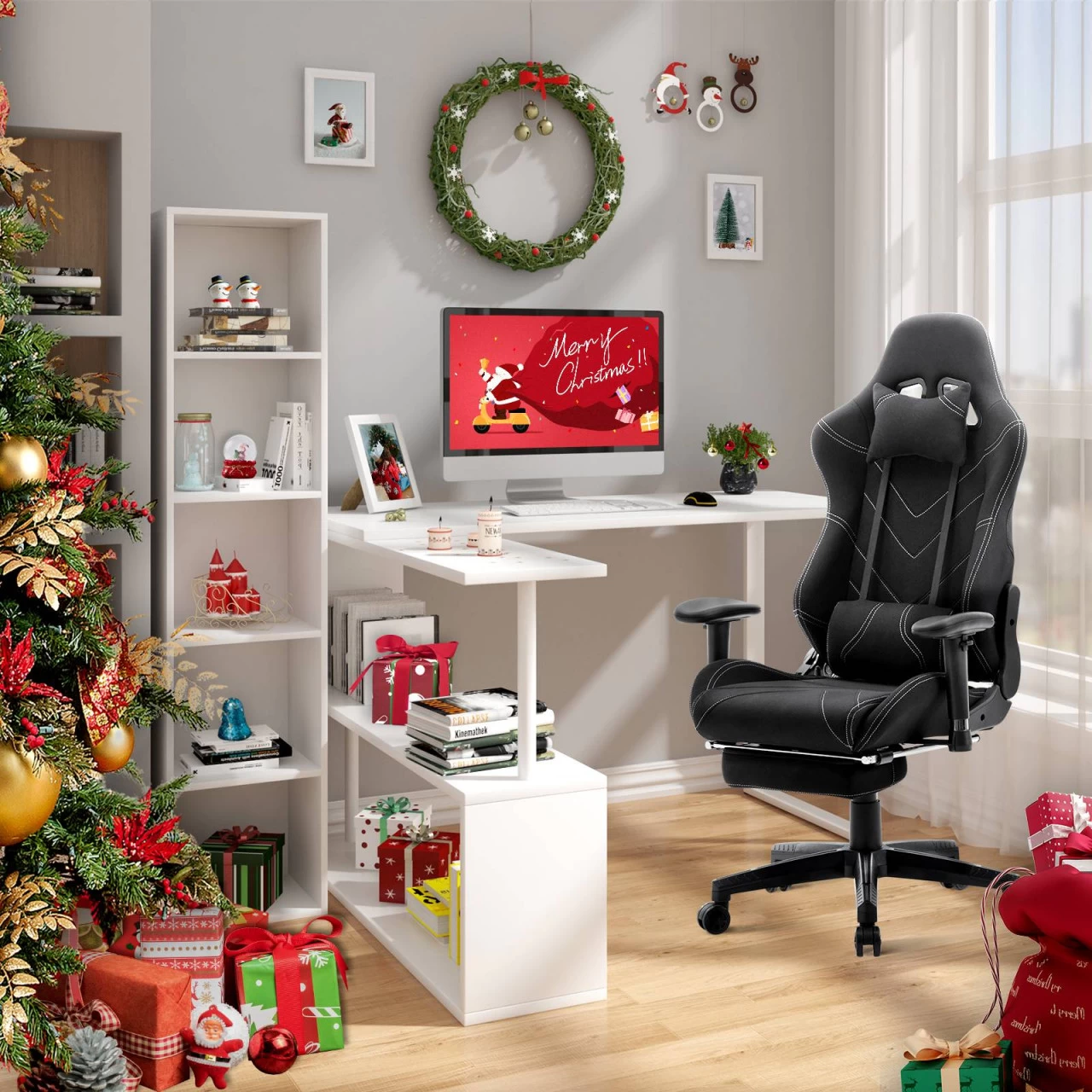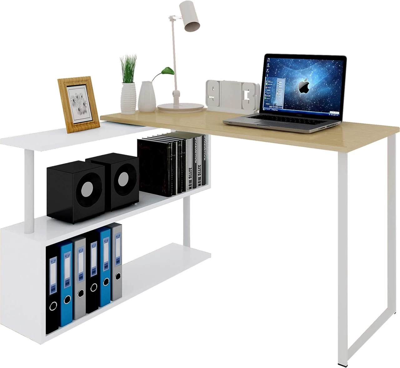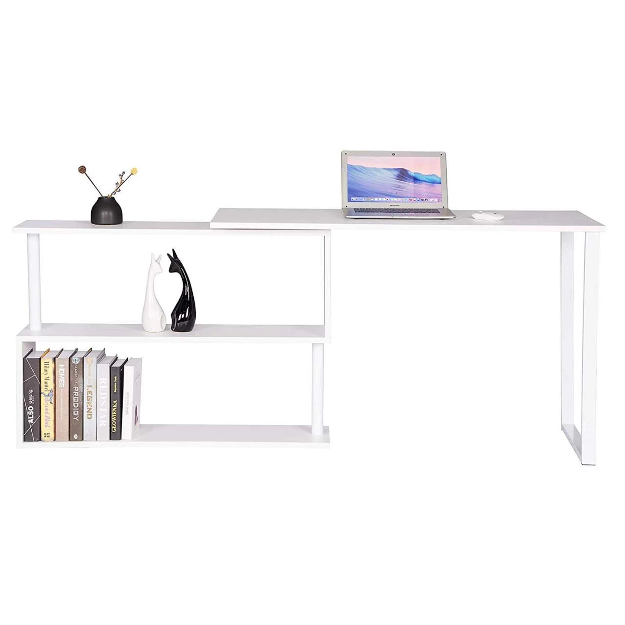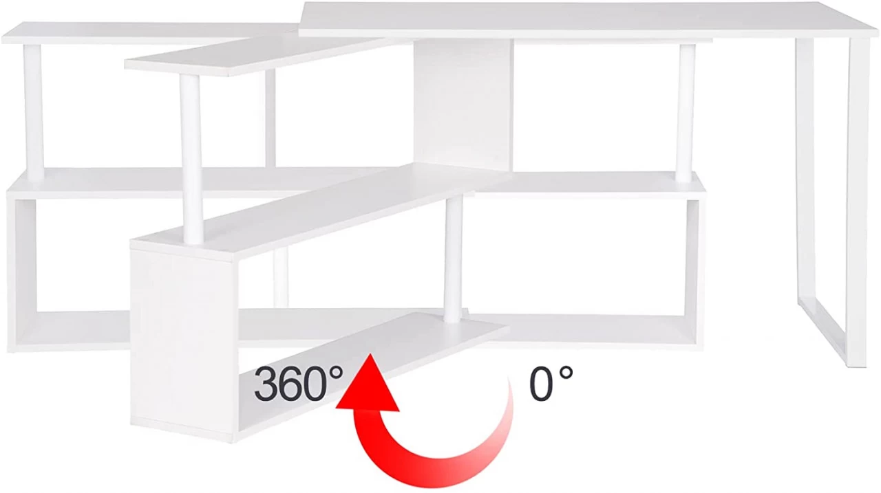 - Um 360° drehbar: Dieser Eckschreibtisch mit Regalen ist um 360° drehbar. Je nach Bedarf können Sie ihn in einer „L“-Form aufstellen, das Regal unter den Schreibtisch schieben oder das Regal ausziehen und den Tisch komplett als einen großen Tisch nutzen. Ob Sie einen kleinen, schmalen Raum oder einen großen, geräumigen Raum haben, der Multifunktionstisch passt perfekt. Ideal für Ihr Zuhause und Büro