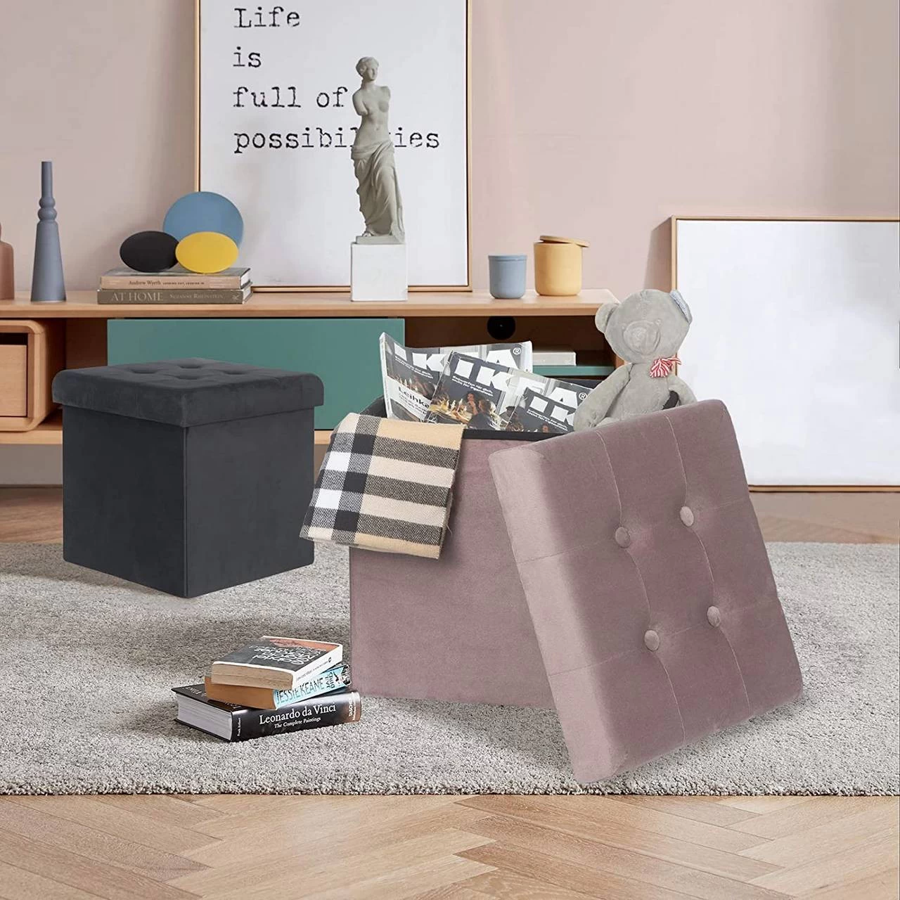 - Ausreichend Stauraum: Der Sitzwürfel ist ein Hocker und eine Aufbewahrungsbox in einem. Er verfügt über ein großes Fassungsvermögen von 38 Litern für Spielzeug, Bücher, Zeitschriften, Snacks, CDs, Kleidung usw.