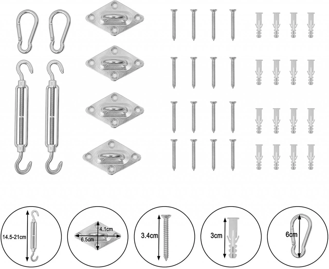 - Einfacher, werkzeugloser Anbau: Sie können das Sonnensegel am Baum, an den Wänden und an hohen Stangen schnell aufhängen; jede Ecke hat einen D-Ring aus rostfreiem 304 Edelstahl, Ø ca. 3 cm und mitgelieferte windfeste PP-Seile, je 1,5 m. Rostfreie Befestigungssets sind auch verfügbar.