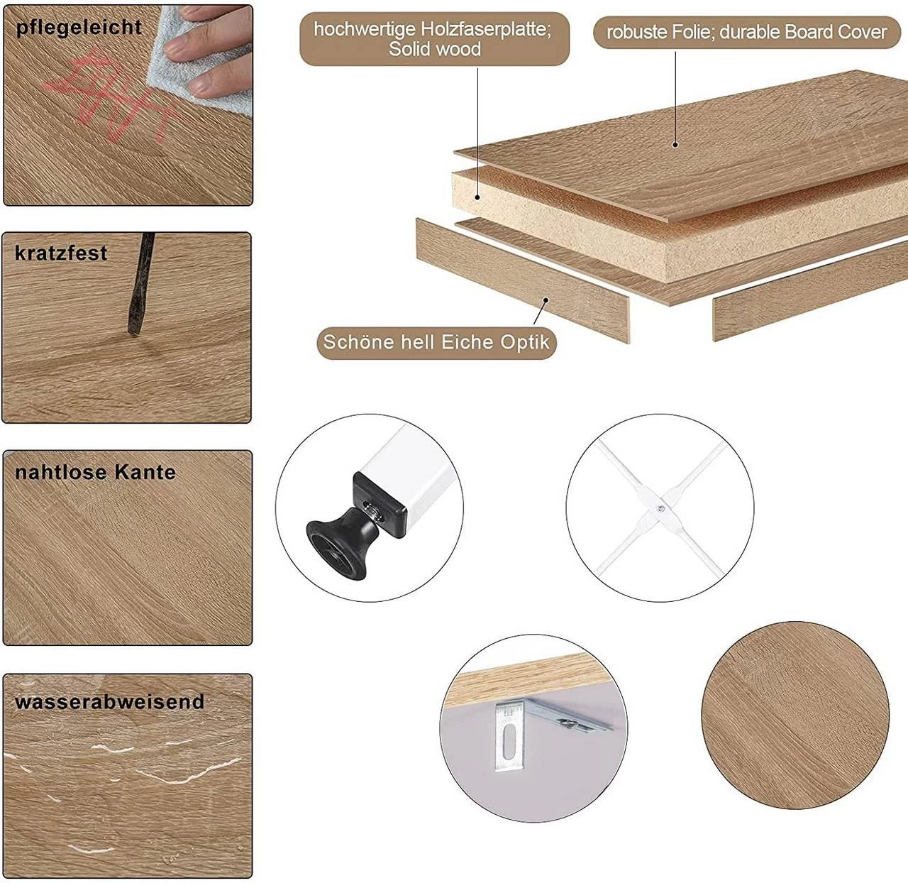 - Der Farbton des Plattens sorgt für angenehme und ansprechende Holzoptik, Material der Platte sind aus Holz