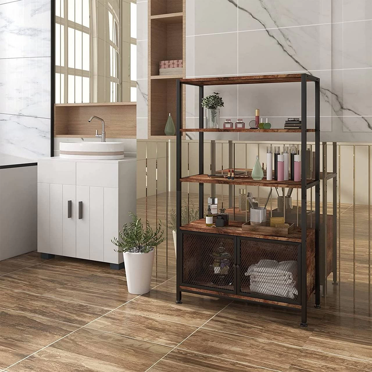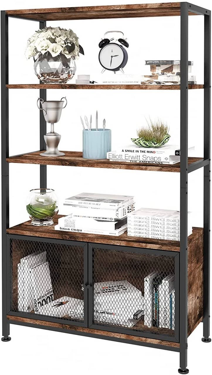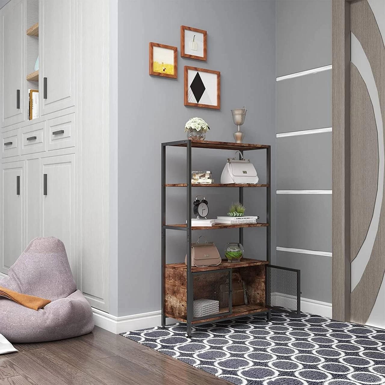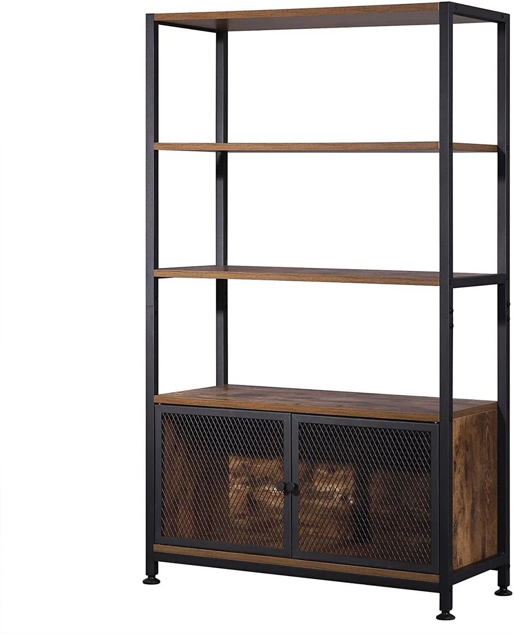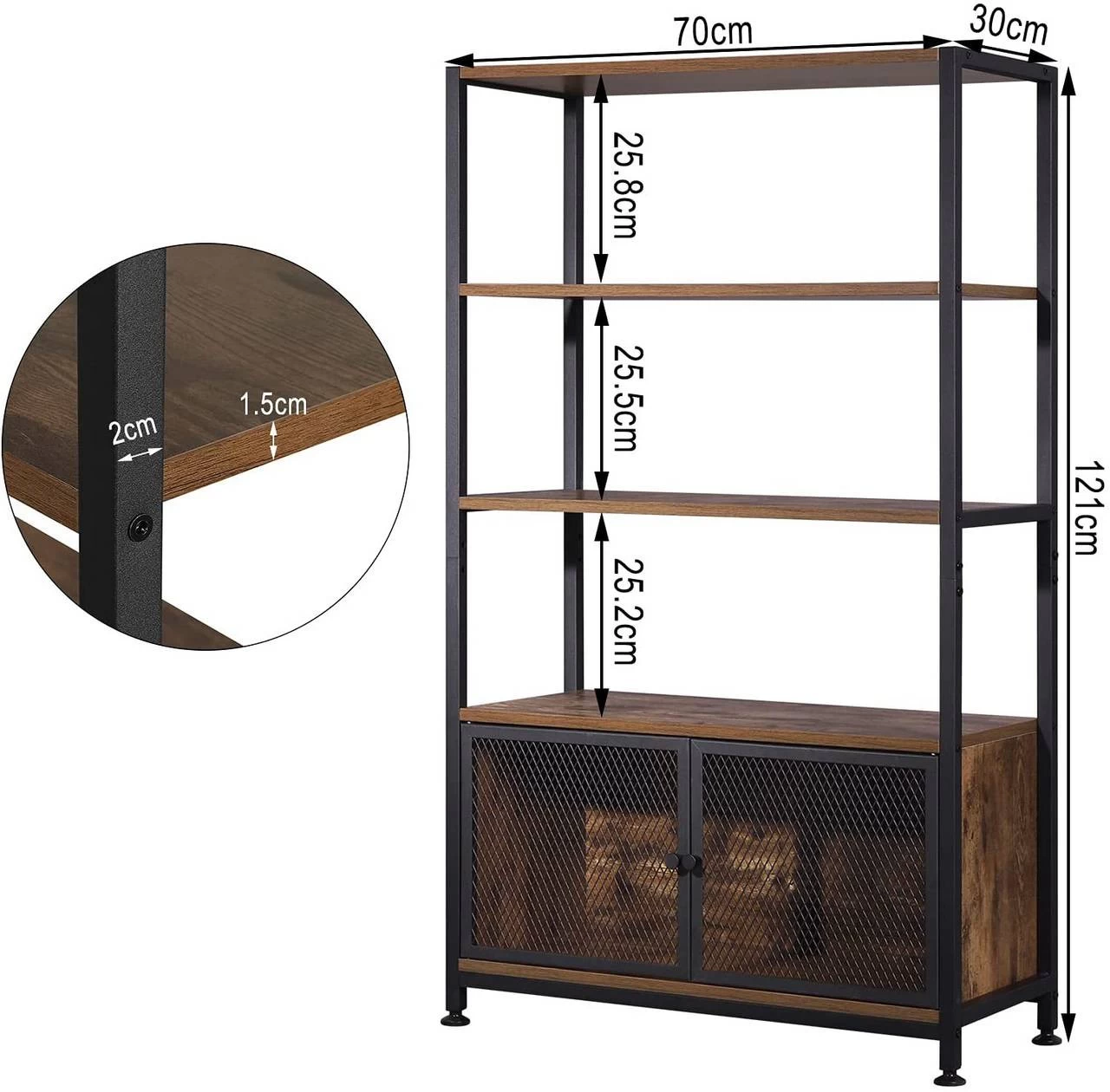 - Geräumiger Aufbewahrungsplatz: Im oberen Bereich von dem Regal mit Türen befinden sich 3 offene Ablagen mit einem Abstand von 25 cm. Hier können Sie dekorative Gegenstände wie Vase, Fotorahmen, Topfpflanzen usw. platzieren. Im unteren Bereich befindet sich ein geschlossener Stauraum mit zwei Metallgittertüren, in dem Sie etwas aufbewahren können, das Sie nicht so oft benutzen
