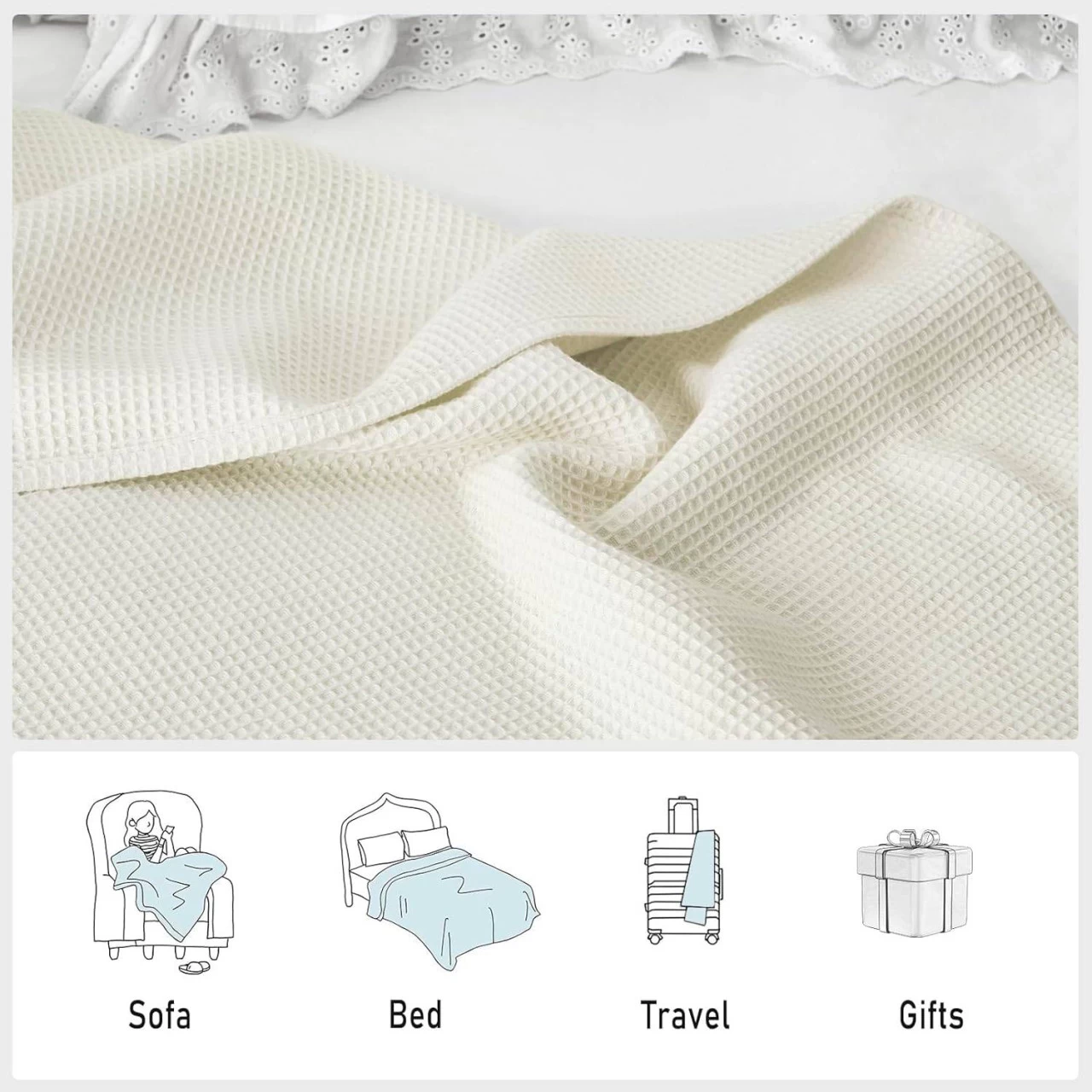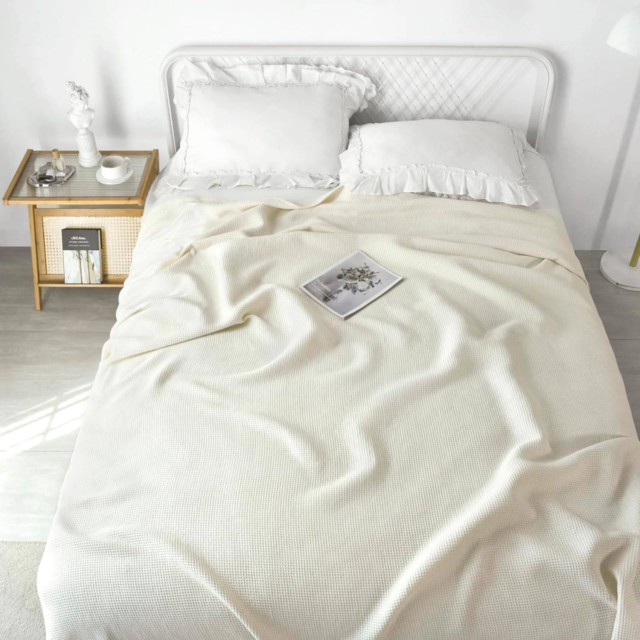 - Diese Bettdecke in Waffelpiqué verleiht Ihrem Zuhause eine schlichte und elegante Ästhetik. Ob auf dem Bett, dem Sofa, dem Stuhl oder im Garten, dieses Textil wird zum dekorativen Mittelpunkt. Sie lässt sich gut mit verschiedenen Wohnstilen kombinieren und bringt Wärme und Harmonie in Ihr Zuhause!