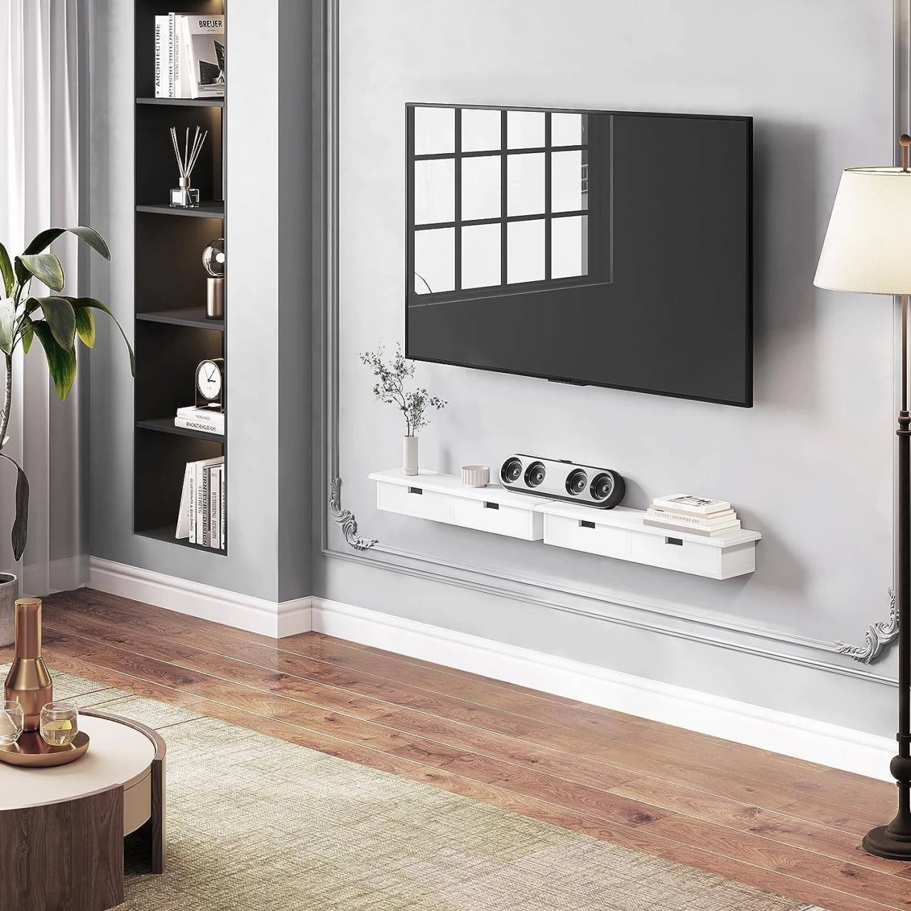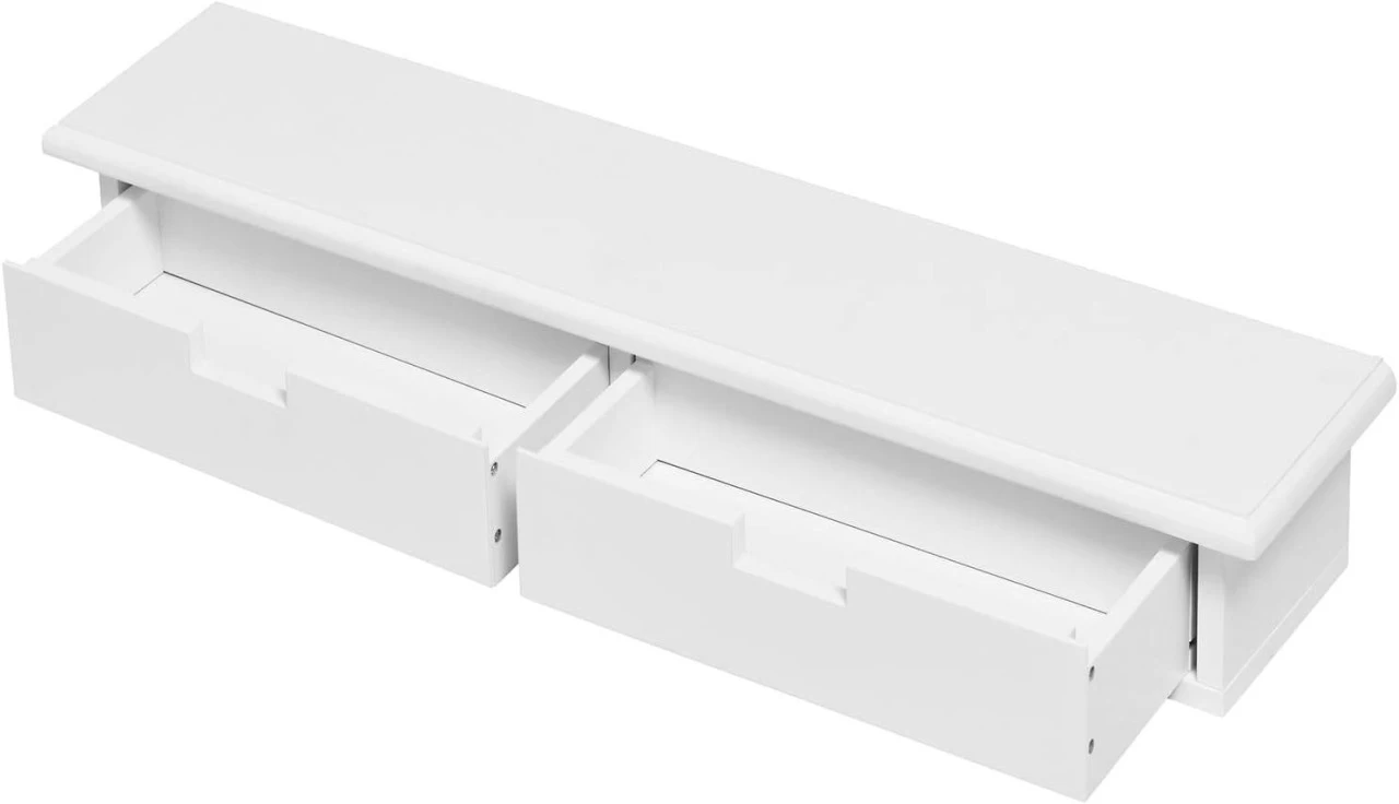 - Zuverlässige Materialien: Aus hochwertigen MDF-Platten gefertigt, ist das Schweberegal mit Schubladen sehr stabil und kann bis zu 10 kg tragen. Die durchgehende weiße Lackierung macht das Regal wasserabweisend, leicht zu reinigen, modern und elegant