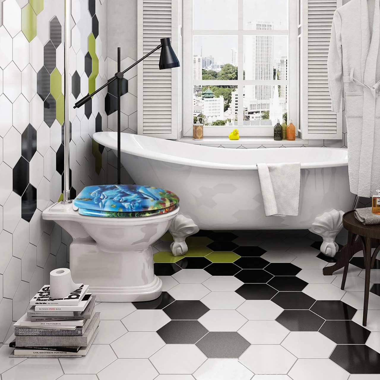 - Duroplastic Toilettendeckel: Der WC-Sitz ist aus Duroplast gefertigt. Seine Oberfläche ähnelt keramischen Glasuren, ist glatt, antibakteriell und leicht zu reinigen. Die Scharniere, die den Klodeckel und das WC verbinden, sind aus rostfreiem Stahl gefertigt, robust und langlebig. Darüber hinaus hat der Sitz aufgrund seiner Bedruckung ein schönes und modisches Aussehen und ist eine gute Dekoration für Ihr Badez
