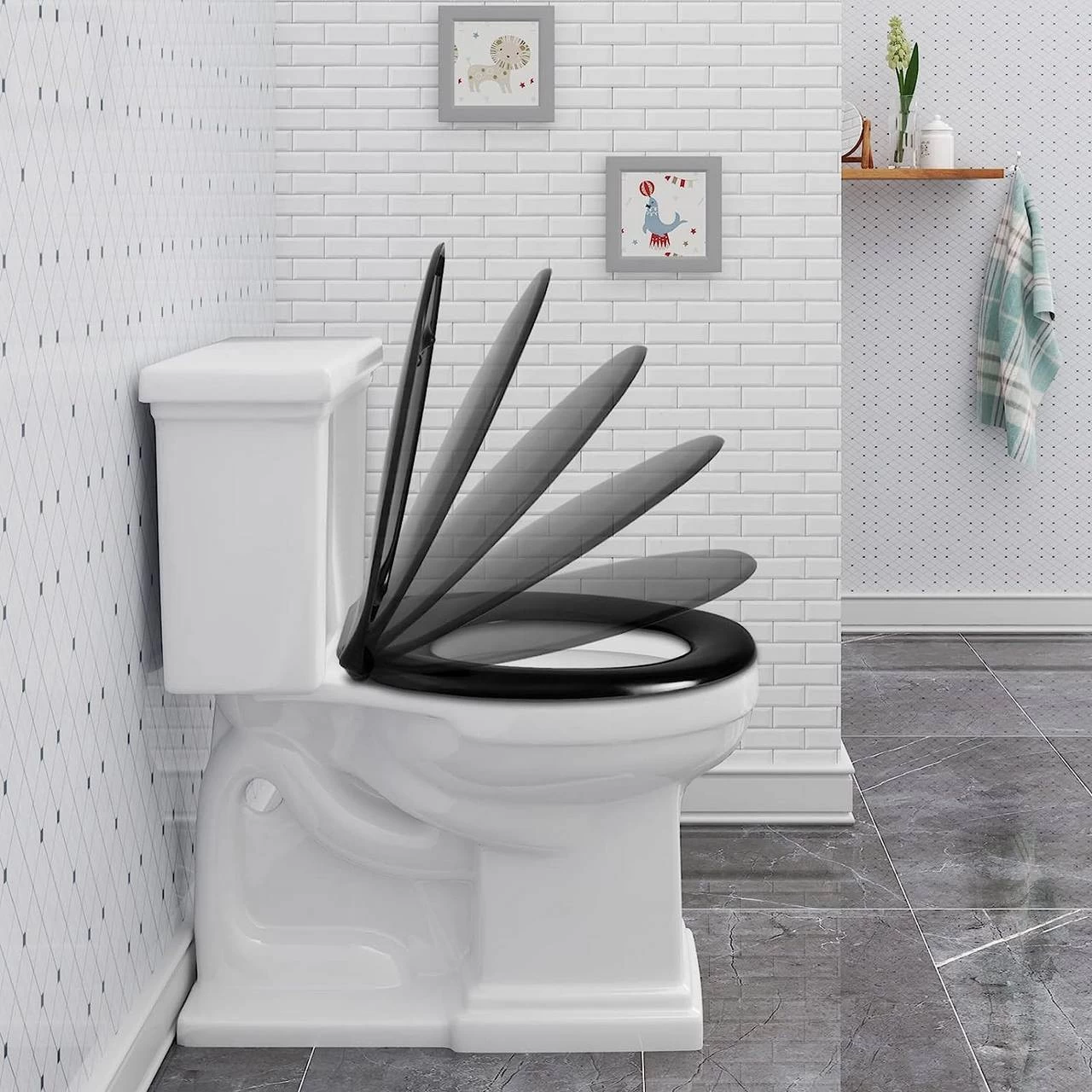 - WC Sitz mit Absenkautomatik: Der Toilettendeckel mit Brille ist mit Soft-Close-Technik ausgestattet. Mithilfe des integrierten Soft-Close-Mechanismus ist es möglich, den Klodeckel leise und sanft zu schließen, sodass es bei Verwendung in der Nacht nicht den Schlaf Ihrer Familien stört