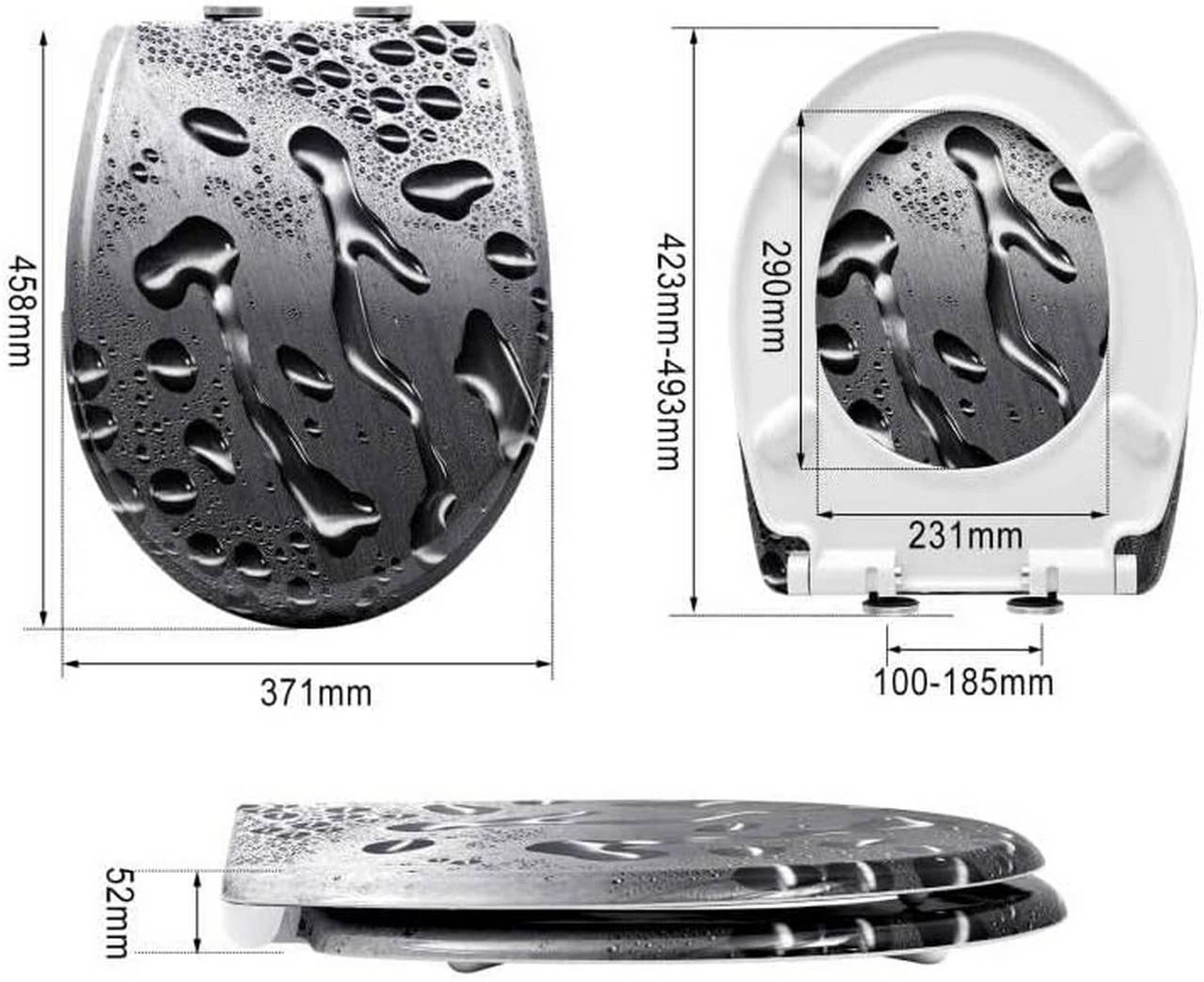 - O-Form WC Brille]: Größe des Außenrings: 371 x 458 mm (B x L), Größe des Innenrings: 231 x 290 mm (B x L),Hinweis: Bitte messen Sie Ihre Toilette vorher aus, um sicher zu gehen, dass der WOLTU Toilettensitz auf Ihre Toilette passt.