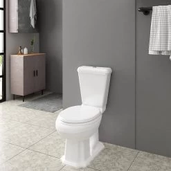 - Toilettendeckel mit Absenkautomatik: Dieser Toilettendeckel aus Duroplast ist mit einer Soft-Close-Mechanik ausgestattet. Mit leichtem Druck schließt er sich langsam und leise. Dies verhindert ein Zuschlagen des Sitzes, schützt Ihre Finger vor dem Einklemmen und reduziert unerwünschte Geräusche