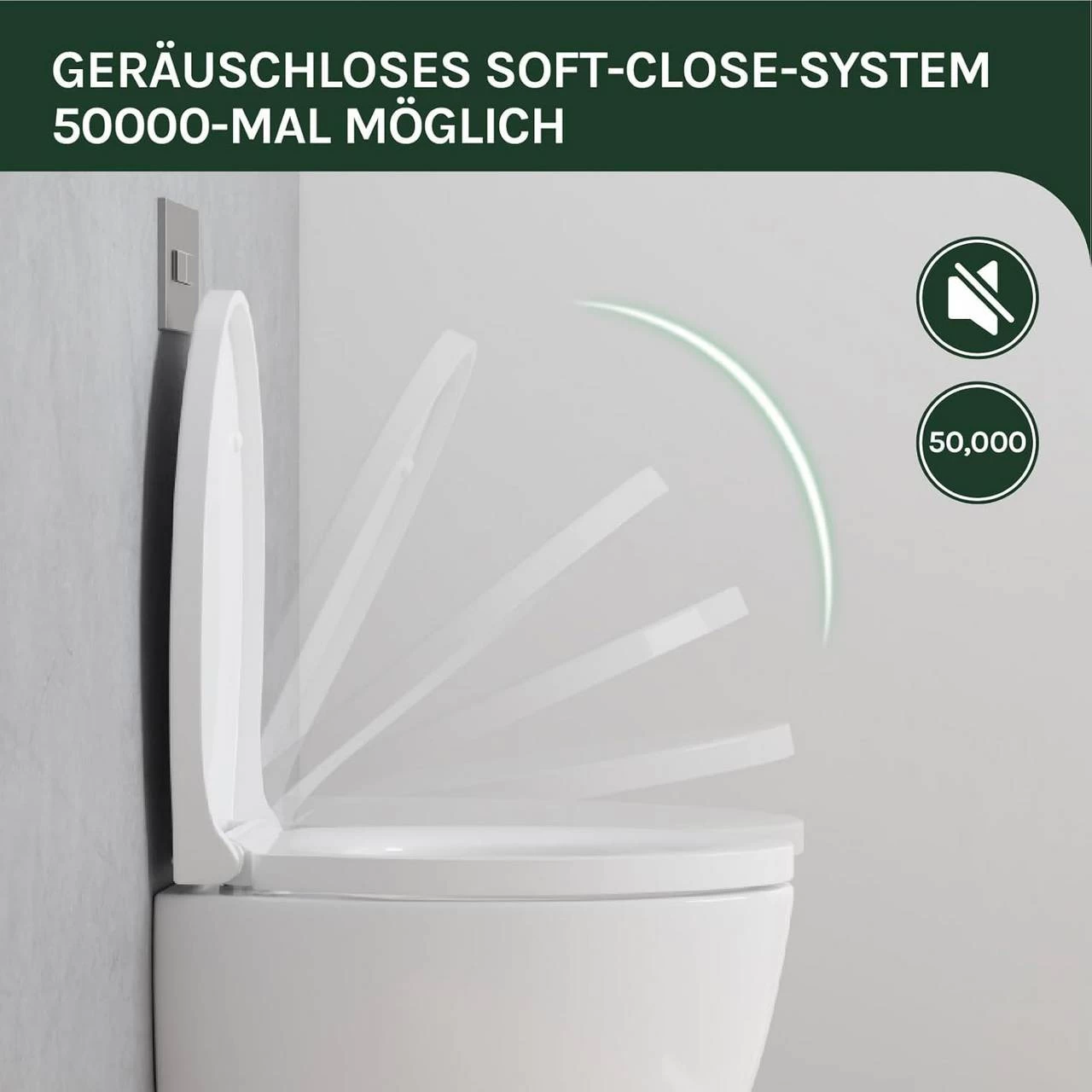 - WC-Sitz mit Absenkautomatik: Der Toilettendeckel mit Brille ist mit Soft-Close-Technik ausgestattet. Mithilfe des integrierten Soft-Close-Mechanismus ist es möglich, den Klodeckel leise und sanft zu schließen, sodass es bei Verwendung in der Nacht nicht den Schlaf Ihrer Familien stört
