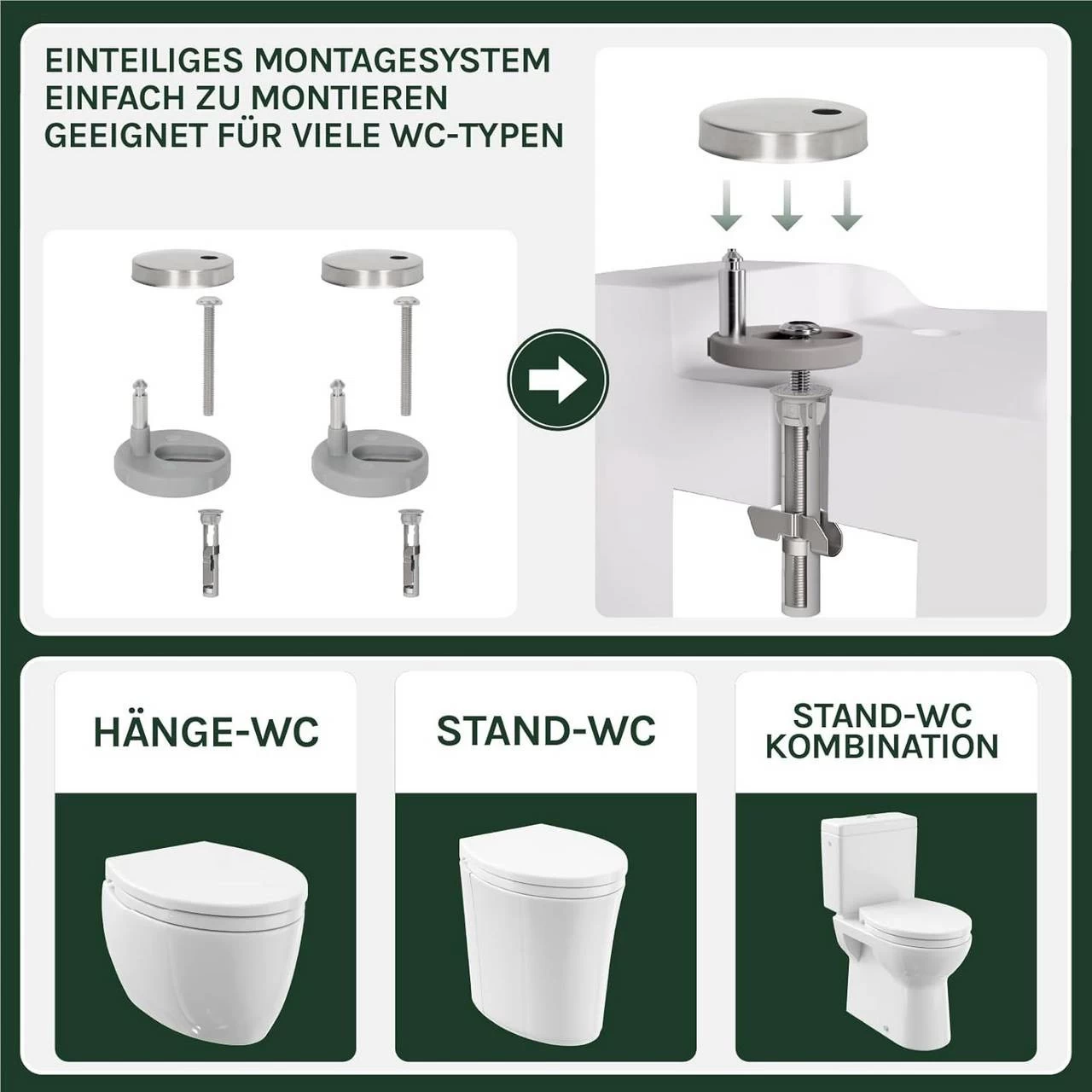 - Quick-Release-Funktion: Mit dem Druckknopf können Sie den Toilettensitz schnell abnehmen, um die WC-Schüssel und WC-Sitz gründlich zu reinigen. Für diesen WC-Sitz gibt es zwei Montagemöglichkeiten: einmal die Möglichkeit von oben und einmal von unten. Gleichzeitig liefern wir alle notwendigen Zubehörteile und Montagewerkzeugen sowie ausführliche Anleitungen, um die Montage so weit wie möglich zu erleichtern