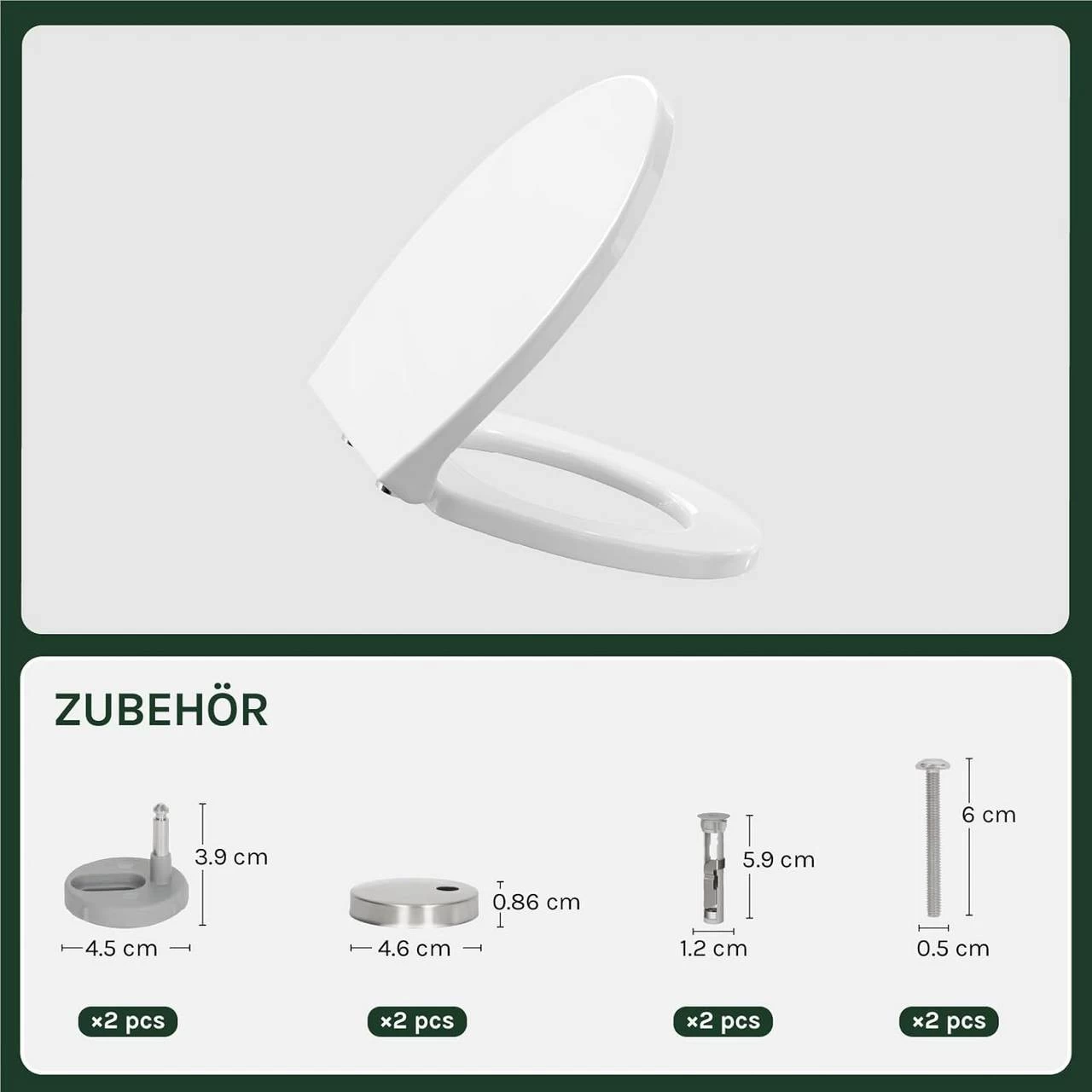 - Geeignet für O-förmige-WC-Schüssel: Der Toilettendeckel misst 371 x 446mm (B x L) und der Innenkreis ist 232 x 286mm (B x L). Bitte beachten Sie: Bitte messen Sie vor dem Kauf Ihre Toilettengröße.