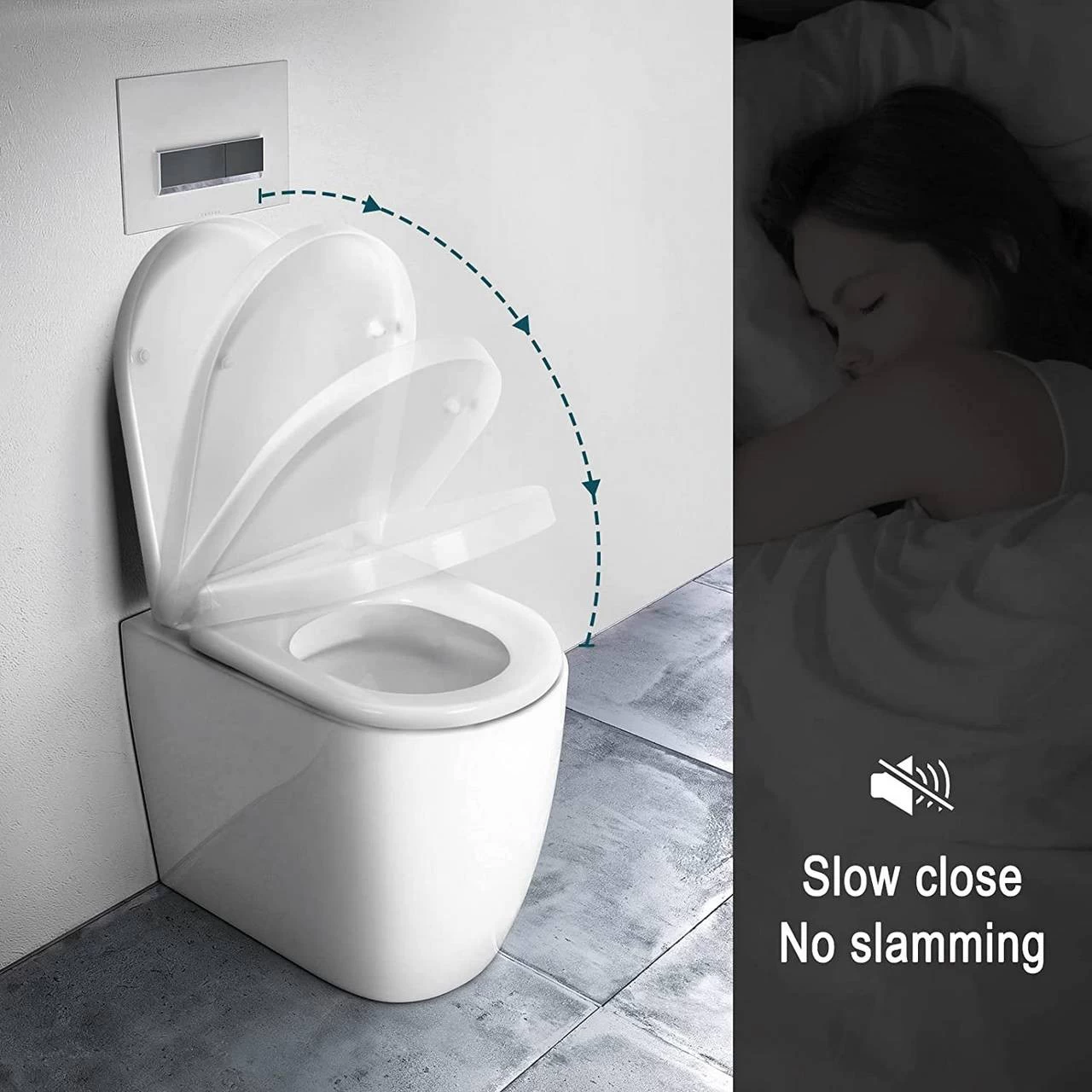 - Mit den eingebauten Absenkdämpfern können der Toilettendeckel und die Toilettenbrille langsam und geräuschlos schließen.