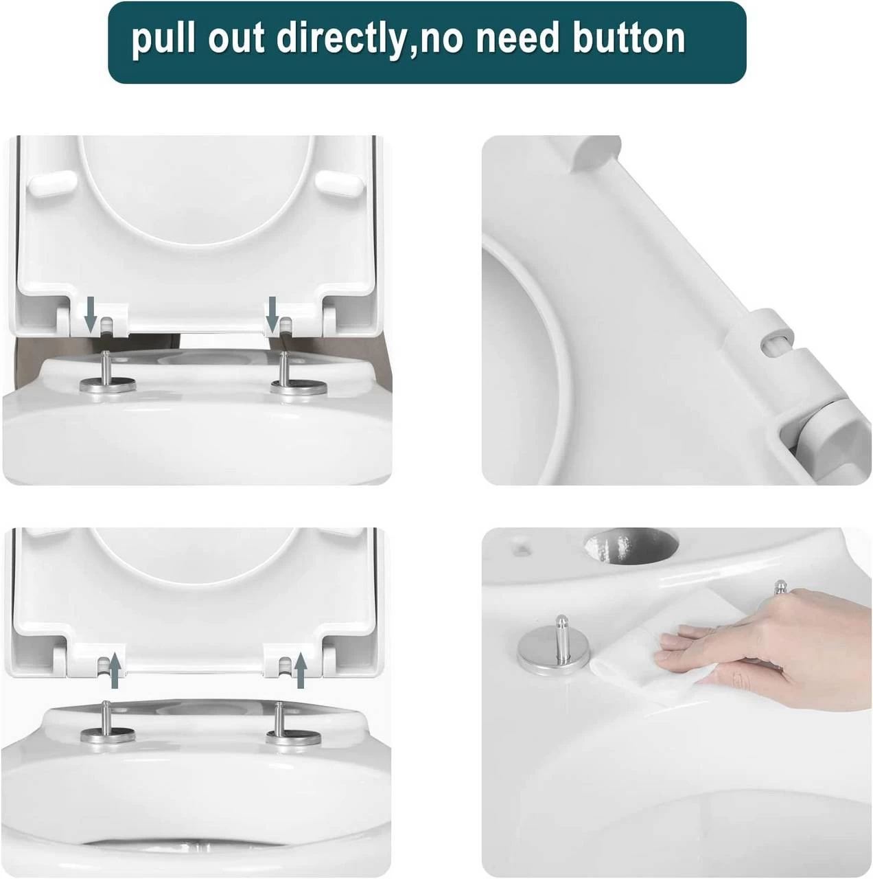 - 360° drehbare Scharniere aus Edelstahl: Richten Sie die Scharniere richtig aus und justieren Sie den Toilettendeckel.