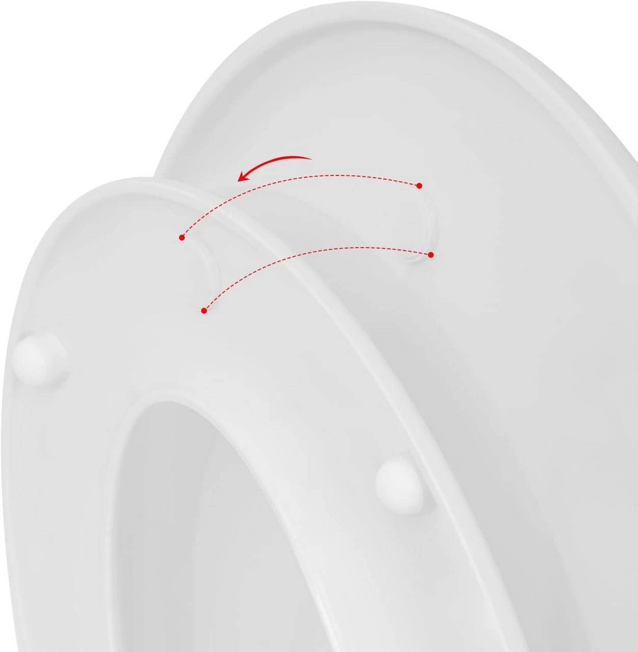 Zwei-Knöpfe-Schnellverschluss: Sie müssen nur den gesamten Toilettendeckel in einer vertikalen Position zur Toilette öffnen, die Knöpfe an den Seiten zu drücken undden Deckel nach oben ziehen, um ihn leicht zu entfernen. Auf diese Weise können Sie eine gründliche Reinigung durchführen.