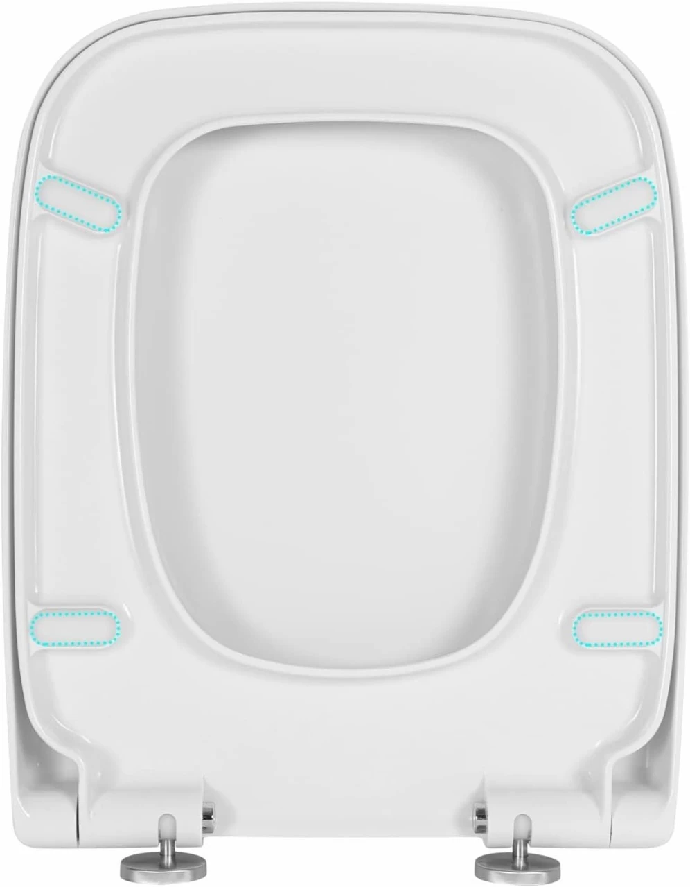 - Dieser WC-Sitz mit Soft-Close ist mit vier Antirutschpuffern unter dem Sitz ausgestattet. Diese können den Druck Ihres Körpers auf der Toilette abfedern.