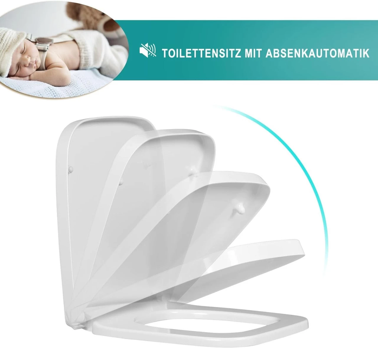 - Toilettendeckel mit absenkautomatik: Die Soft-Close-Technik ermöglicht leises und sanftes Schließen.