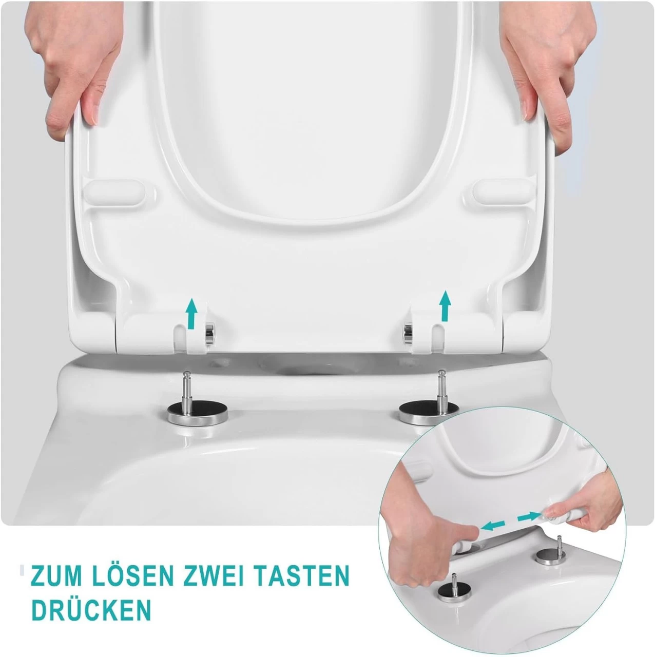 - Quick-Release-Funktion: Mit dem Druckknopf können Sie den Toilettensitz schnell abnehmen, um die WC-Schüssel und WC-Sitz gründlich zu reinigen. Für diesen WC-Sitz gibt es zwei Montagemöglichkeiten: einmal die Möglichkeit von oben und einmal von unten. Gleichzeitig liefern wir alle notwendigen Zubehörteile und Montagewerkzeugen sowie ausführliche Anleitungen, um die Montage so weit wie möglich zu erleichtern