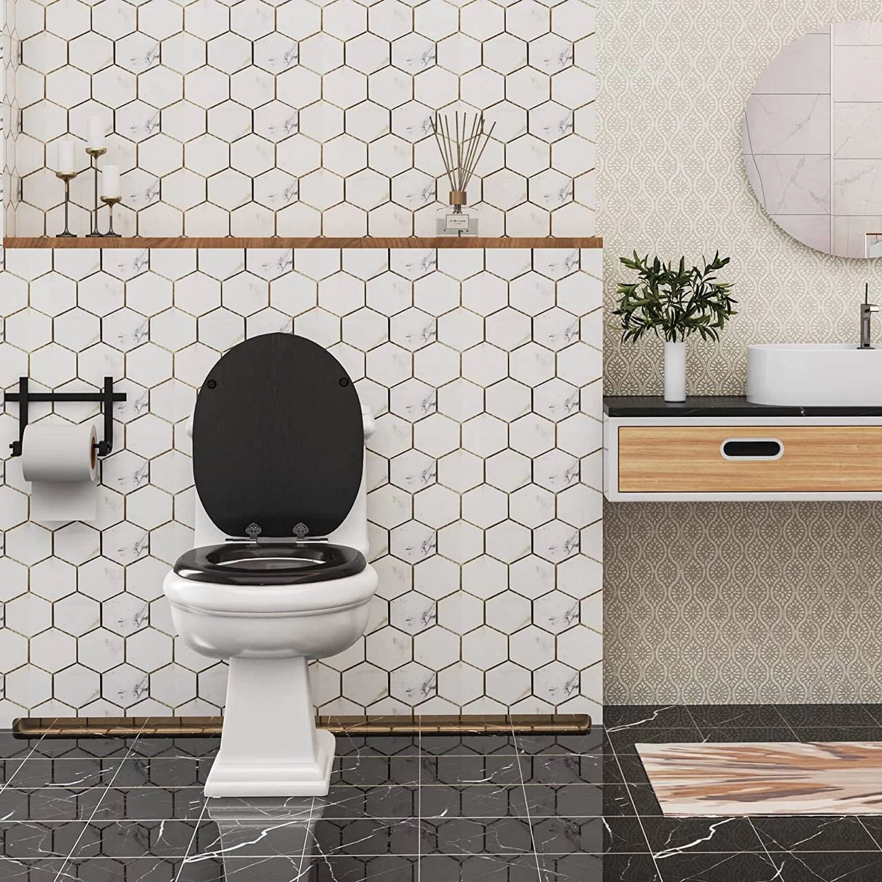 WC-Sitz Toilettensitz Mit Absenkautomatik, MDF Holzkern, Softclose Scharnier, Antibakteriell