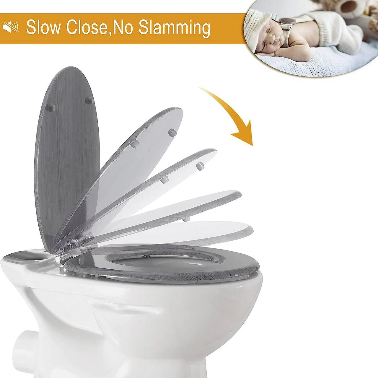 - Durch das geräuschlose Schließen macht der Klodeckel während der Benutzung keine Geräusche. Die ganze Familie kann die ganze Nacht friedlich schlafen.