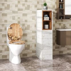 Hochwertige Materialien: Die drei bedruckten Seiten des MDF-Toilettensitzes sind mit einer PVC-Folie beschichtet und haben eine glatte Oberfläche, die Flecken, Verblassen und Kratzern widerstehen kann und eine lange Lebensdauer verspricht.