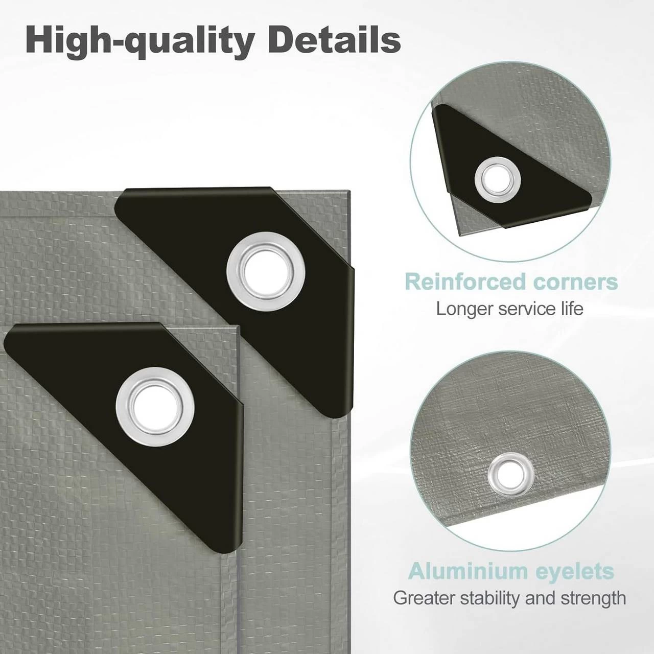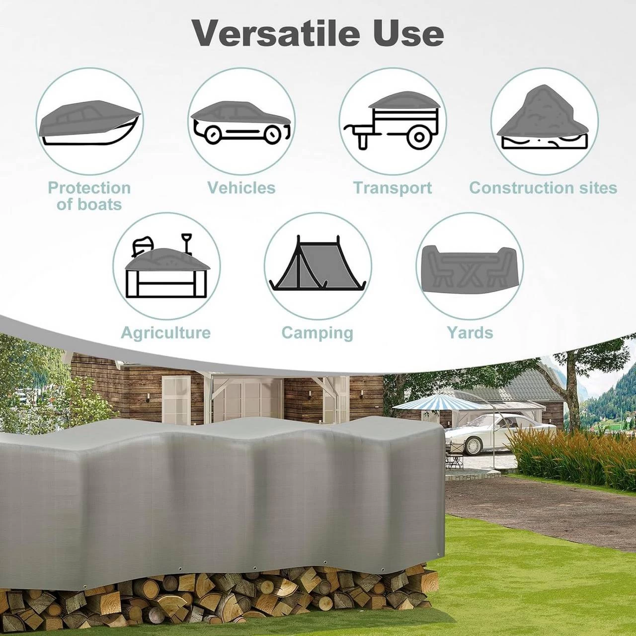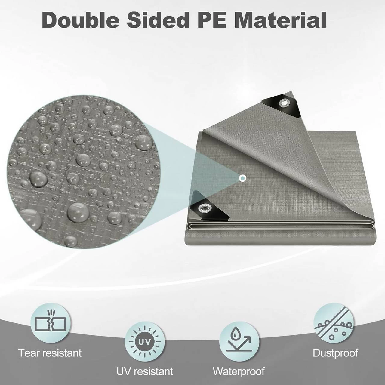 - Langlebige wasserdichte Abdeckplane: Diese Plane ist aus 280 g/m² neuem PE hergestellt, ist wasserdicht, reißfest und wetterfest. Die Abdeckung für den Außenbereich kann lange Zeit verwendet werden, um Ihr Eigentum vor Regen, Schnee, Wind, Staub oder starker Sonneneinstrahlung zu schützen.