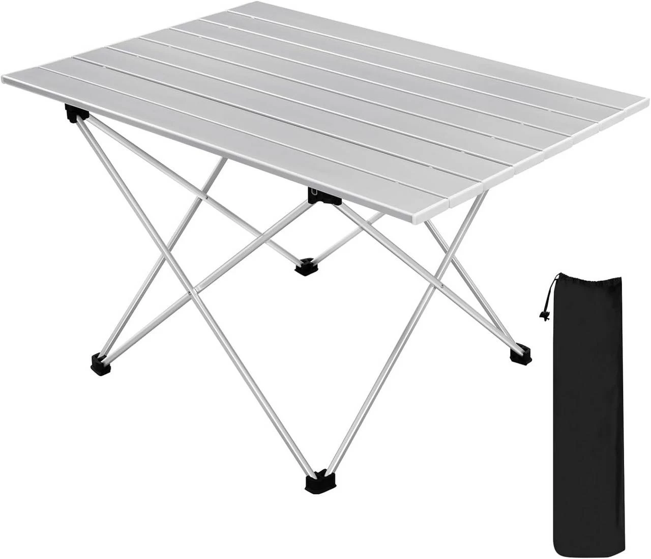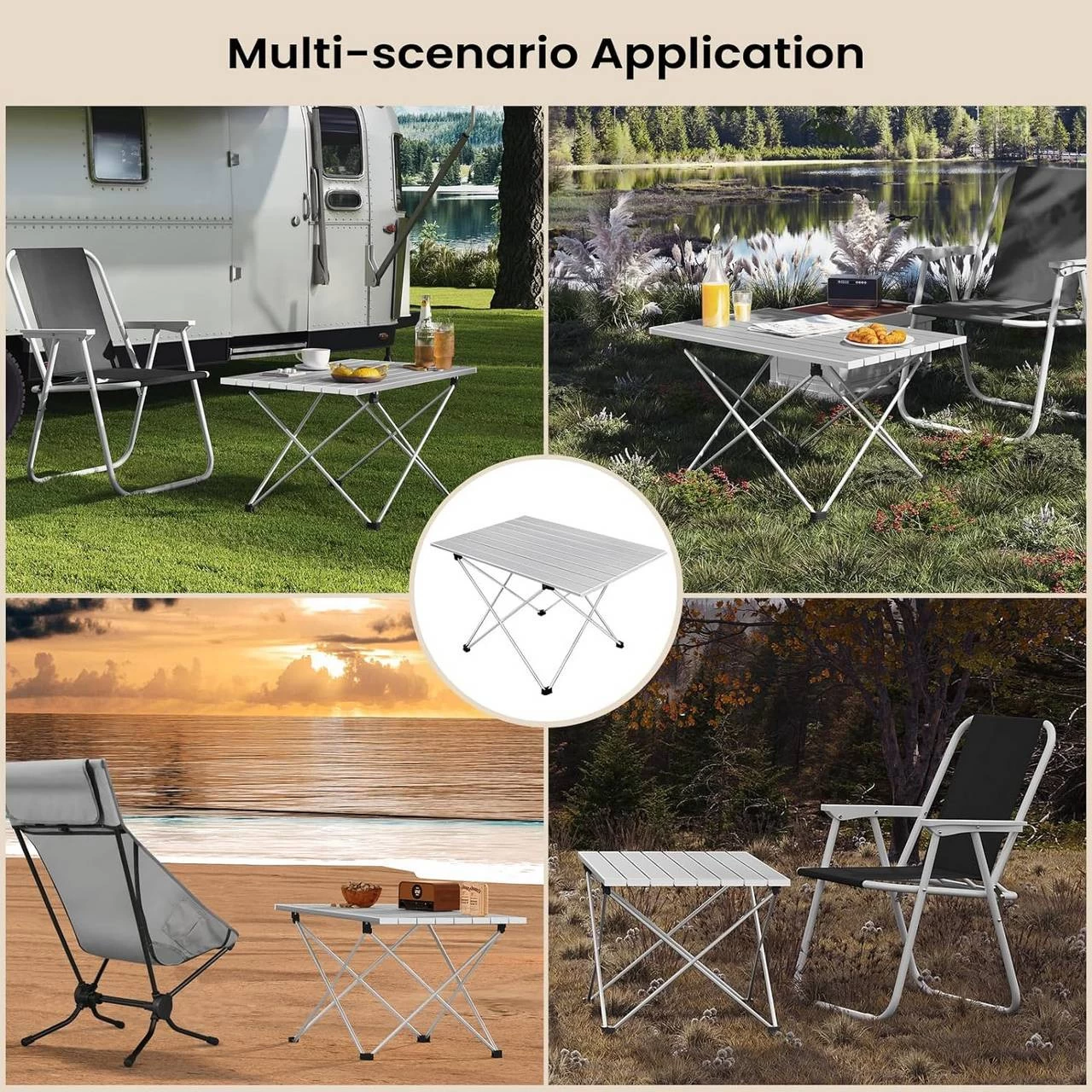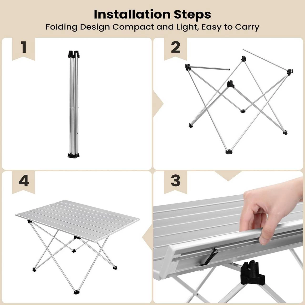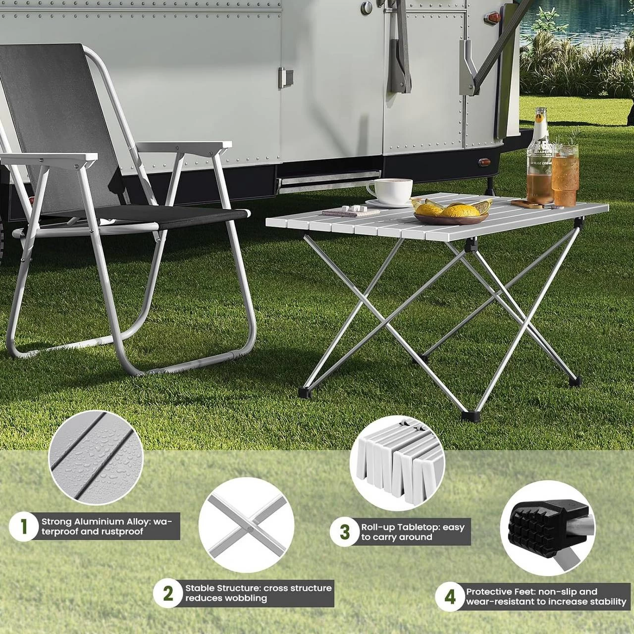 - Stabiler Campingtisch: Das gekreuzte Gestell und die Tischplatte sind aus Aluminiumlegierung hergestellt, die eine Grundstabilität gewährt. Die Füße schützen den Tisch vor dem Verrutschen und erhöhen die Stabilität.