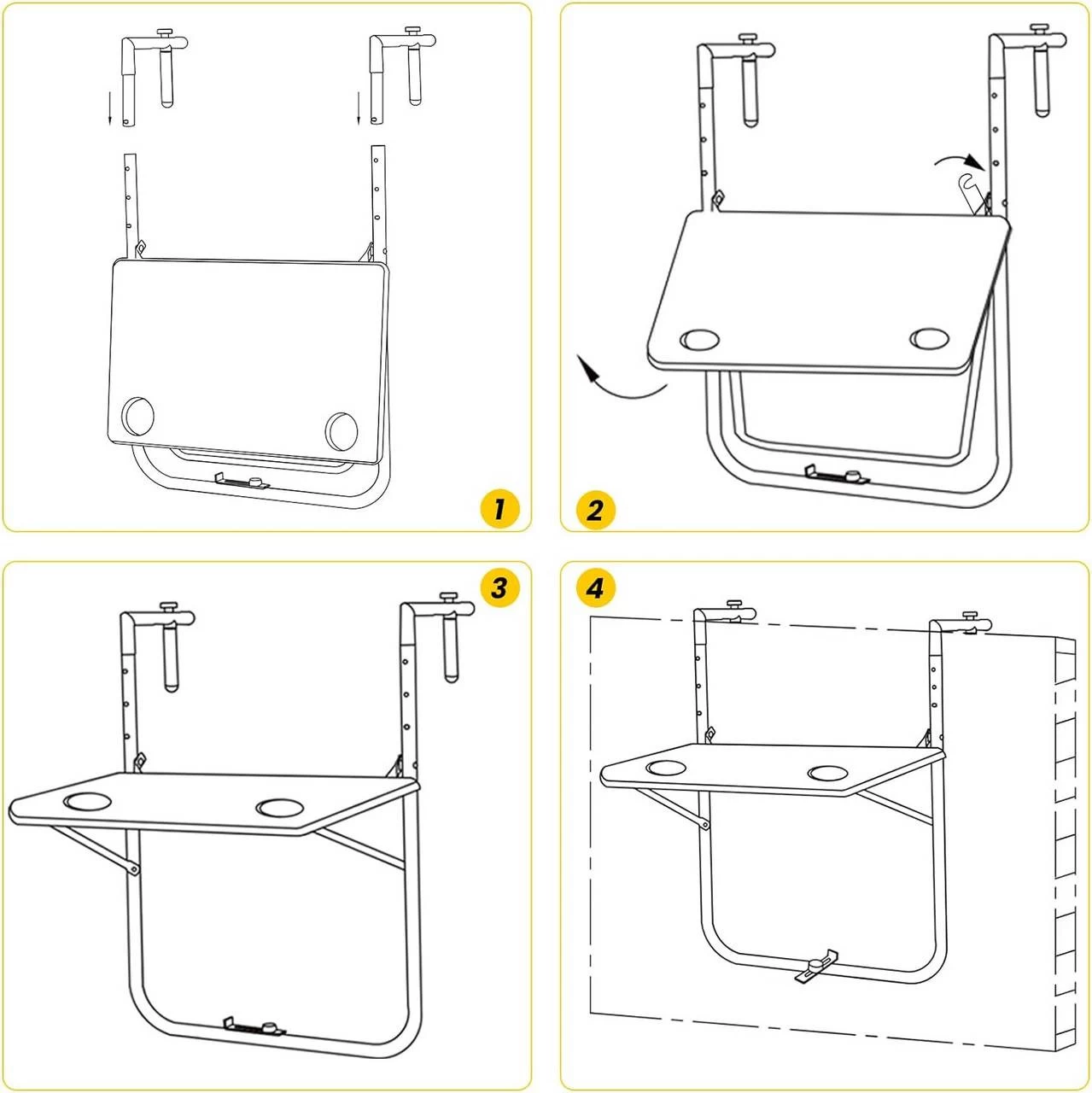 - EINFACHE MONTAGE: Nach der bebilderten Anleitung im Paket können Sie diesen wetterfesten Tisch schnell und ohne Werkzeug auf dem Balkon, der Terrasse oder im Garten aufhängen. Genießen Sie die frische Luft und die warmen Sonnenstrahlen!