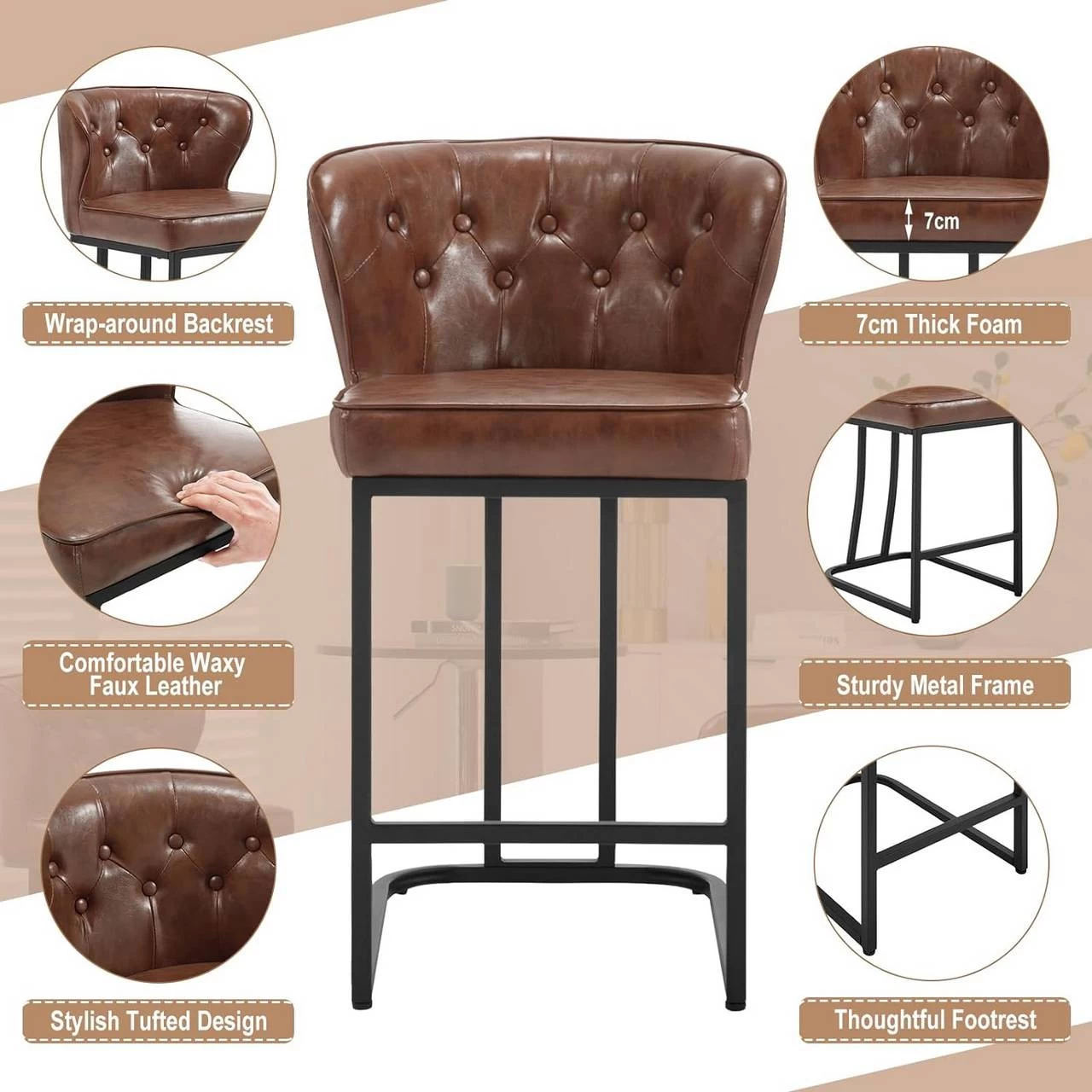 Ästhetisch & Multifunktional: Dank des glänzenden Vintage-Wachs-Kunstleders und des mattschwarzen Metallgestells hat dieser Barhocker mit Fußstütze eine moderne Ästhetik und fügt sich leicht in jede Umgebung ein. Er kann als Küchenstuhl, Kücheninselhocker, Barhocker, Thekenhocker, Empfangsstuhl, Wohnzimmerhocker usw. verwendet werden.