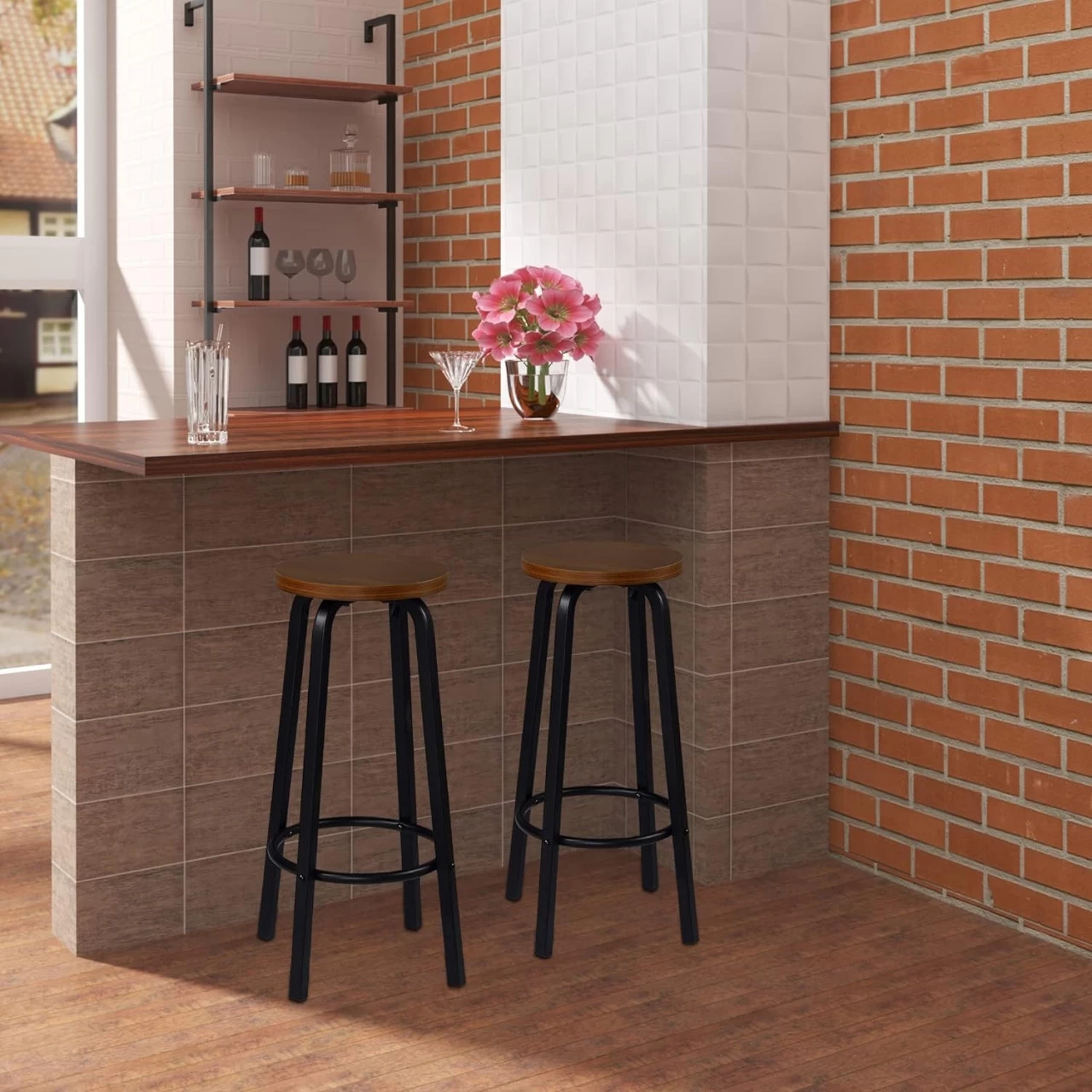 - Barhocker mit runder Sitzfläche: MDF-Sitzfläche und Metallgestell kombinieren perfekt industriellen und modernen Stil. Jeder Barhocker misst 30 x 71 cm (φ x H) und kann unter die meisten Stehtische gestellt werden, sodass er keinen Platz wegnimmt, wenn er nicht benutzt wird.