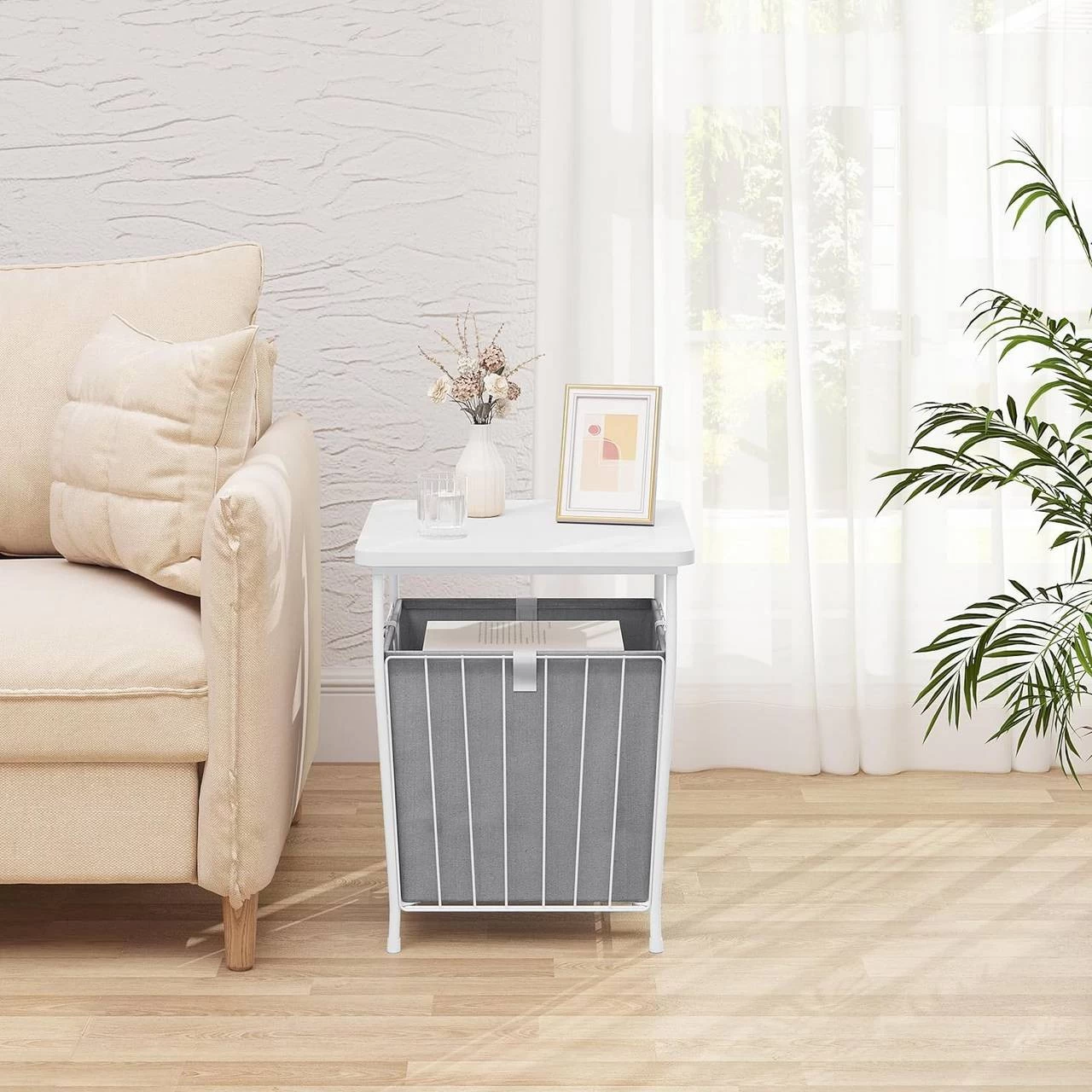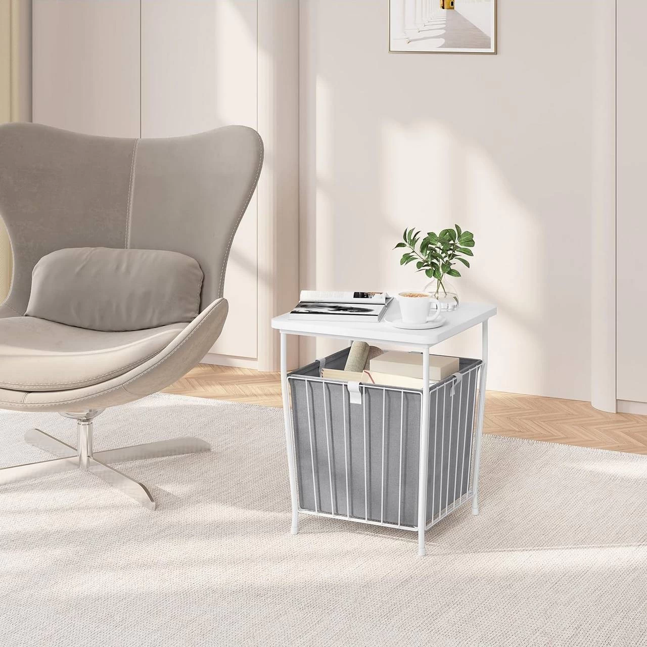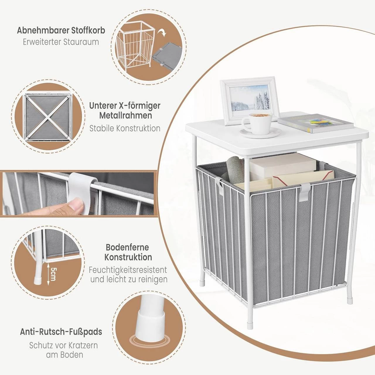 - 2 STAURÄUME: Die Tischplatte des quadratischen Couchtischs hält Ihr Handy, Ihre Tasse, Vase usw. griffbereit und der abnehmbare Aufbewahrungskorb aus Stoff bietet reichlich Platz für Spielzeug, Bücher, Snacks, Decken usw.