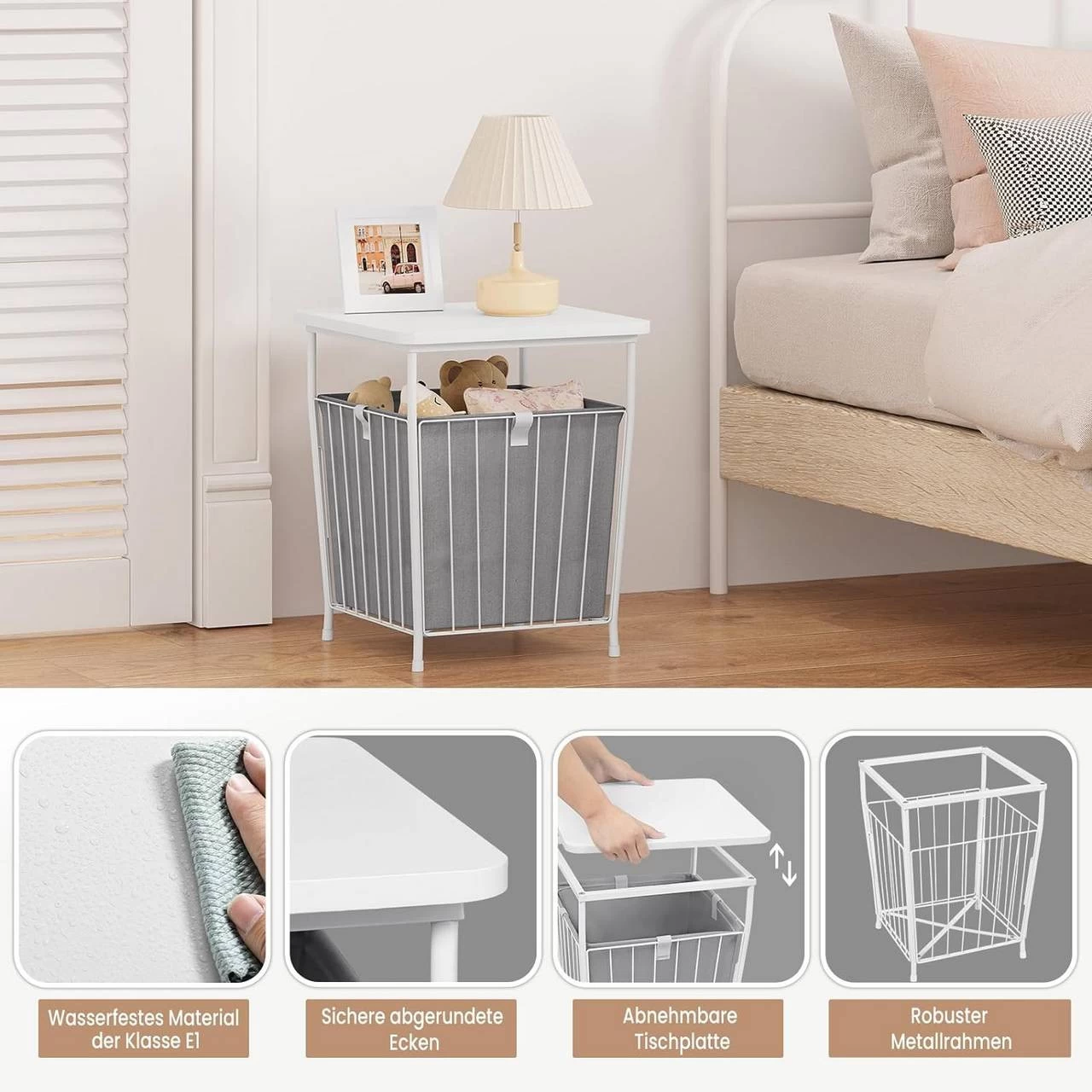 Abnehmbarer Stoffkorb: Der Korb bietet viel Stauraum und kann auch als Wäschekorb verwendet werden, um Ihr Zimmer ordentlich zu halten.