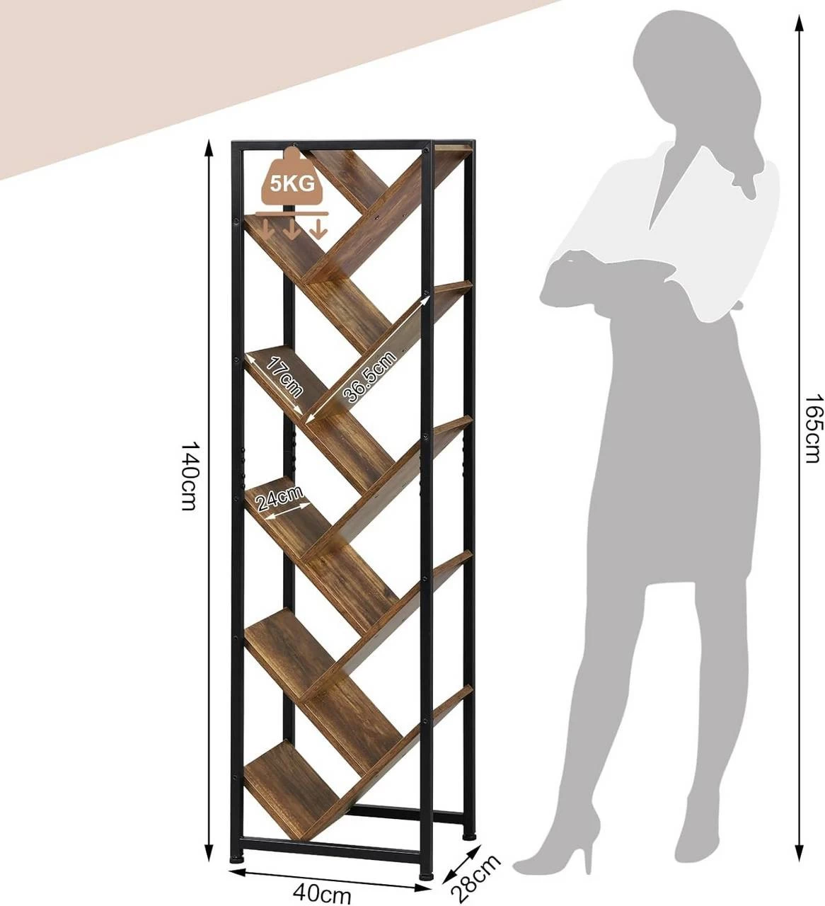 Baumform: Das baumförmige Bücherregal mit einem Farbschema von Schwarz und Holzoptik ist einzigartig und modern, bringt Ihrem Raum auch eine natürliche Note.