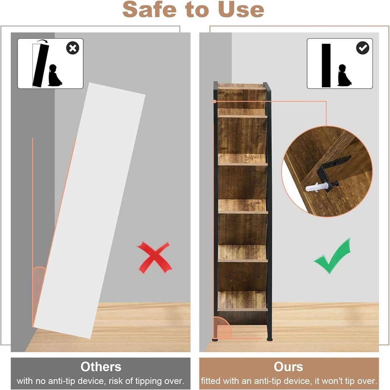 - STABIL & SICHER: Die dicken Platten sind T-förmig miteinander verbunden und am Metallrahmen, der stark, rostfrei und stabil ist, befestigt, sodass das Standregal nicht wackelt. Für mehr Sicherheit befestigen Sie das Regal mit Kippschutz an der Wand.
