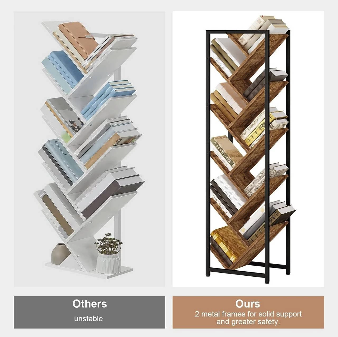 - BAUM-FORM-BÜCHERREGAL: Das Regal in Baumform ist einzigartig und spaßvoll, bietet mit 10 offenen Ebenen vielen griffbereiten Stauraum für Bücher, Zeitschriften, Zeitungen, Ordner, CDs usw., um eine von Natur inspirierte Mini-Bibliothek zu schaffen.