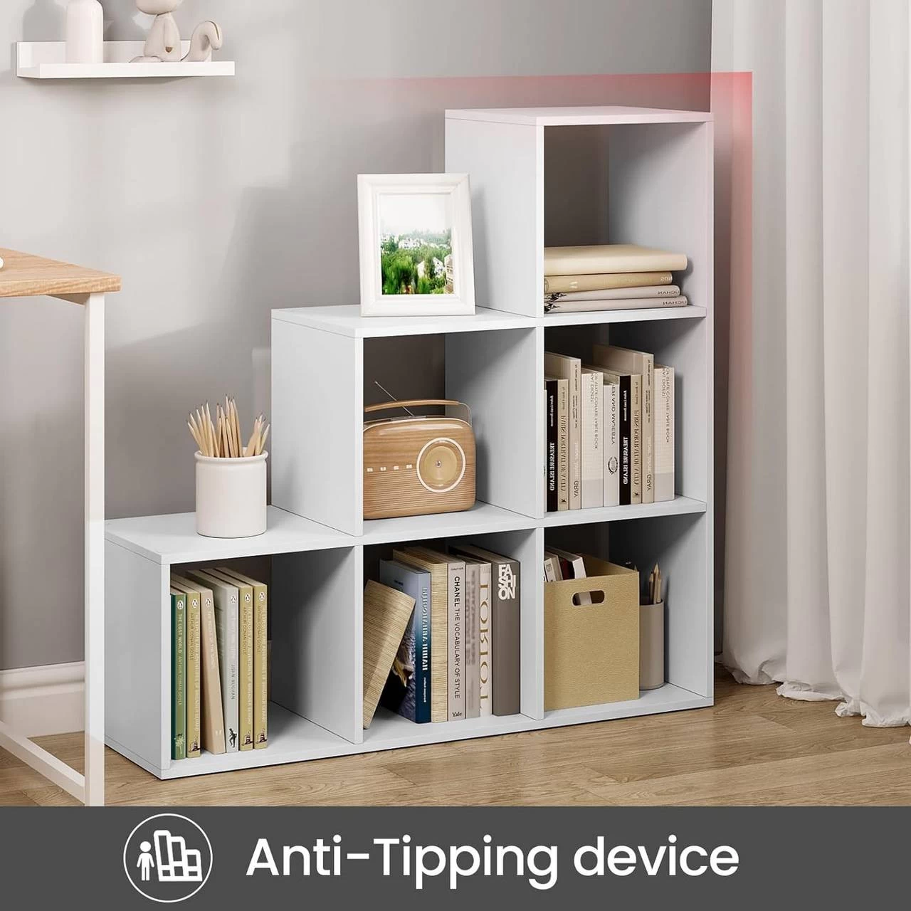 Ausreichend Stauraum: 6 offene Würfel bieten Platz für Bücher, Topfpflanzen, Fotos usw. Jedes Fach hat eine Rückplatte, damit die Gegenstände nicht herausfallen können.