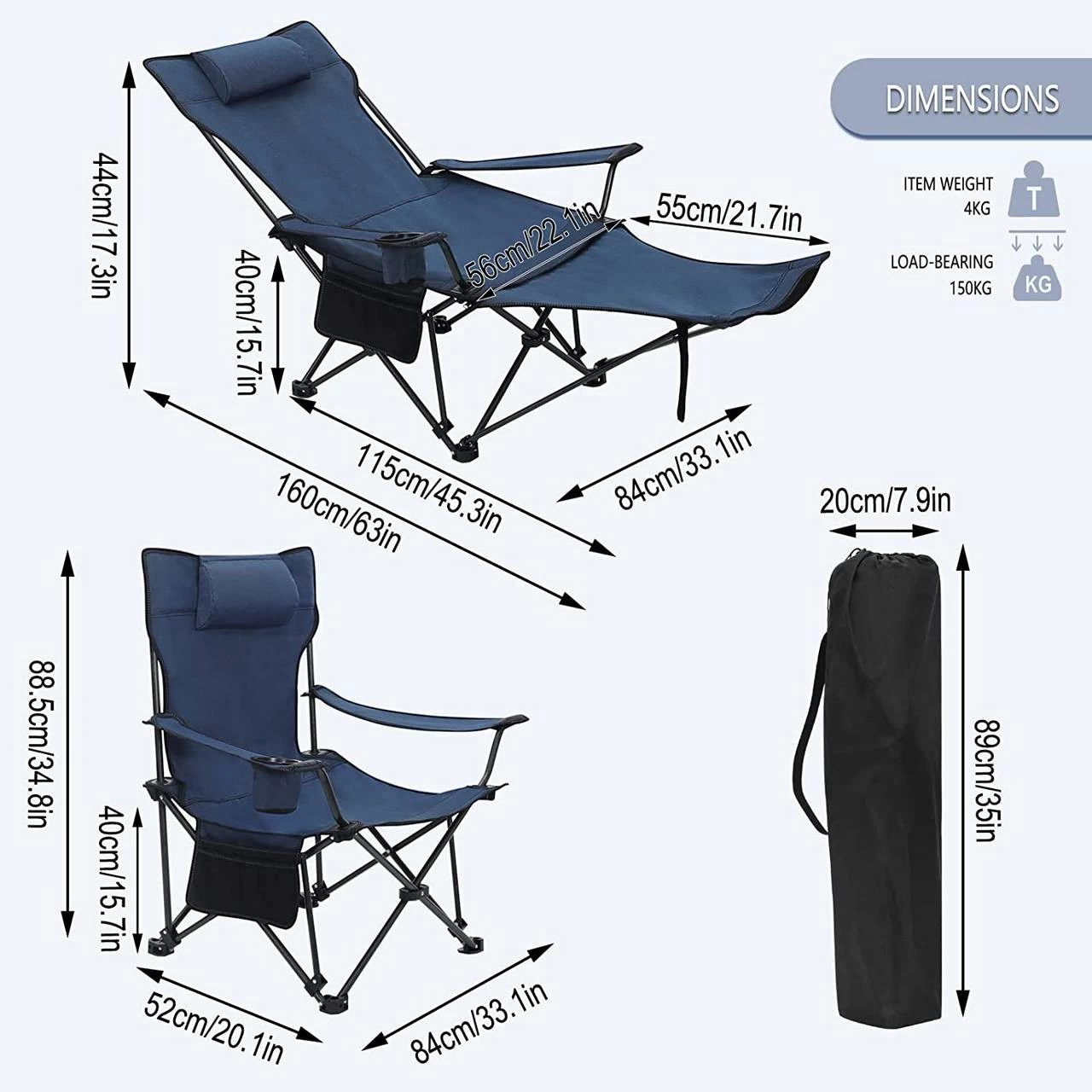 - Leicht & faltbar: Der Campingstuhl ist faltbar und wiegt nur 4 kg. Nach dem Falten kann er zur Aufbewahrung und zum Transport in unserer mitgelieferten Tragetasche verstaut werden. Gefaltete Größe: 93x18x18 cm. Aufgeklappte Maße: 115 x 88,5 x 84 cm (sitzend), 160 x 44 x 84 cm (liegend)