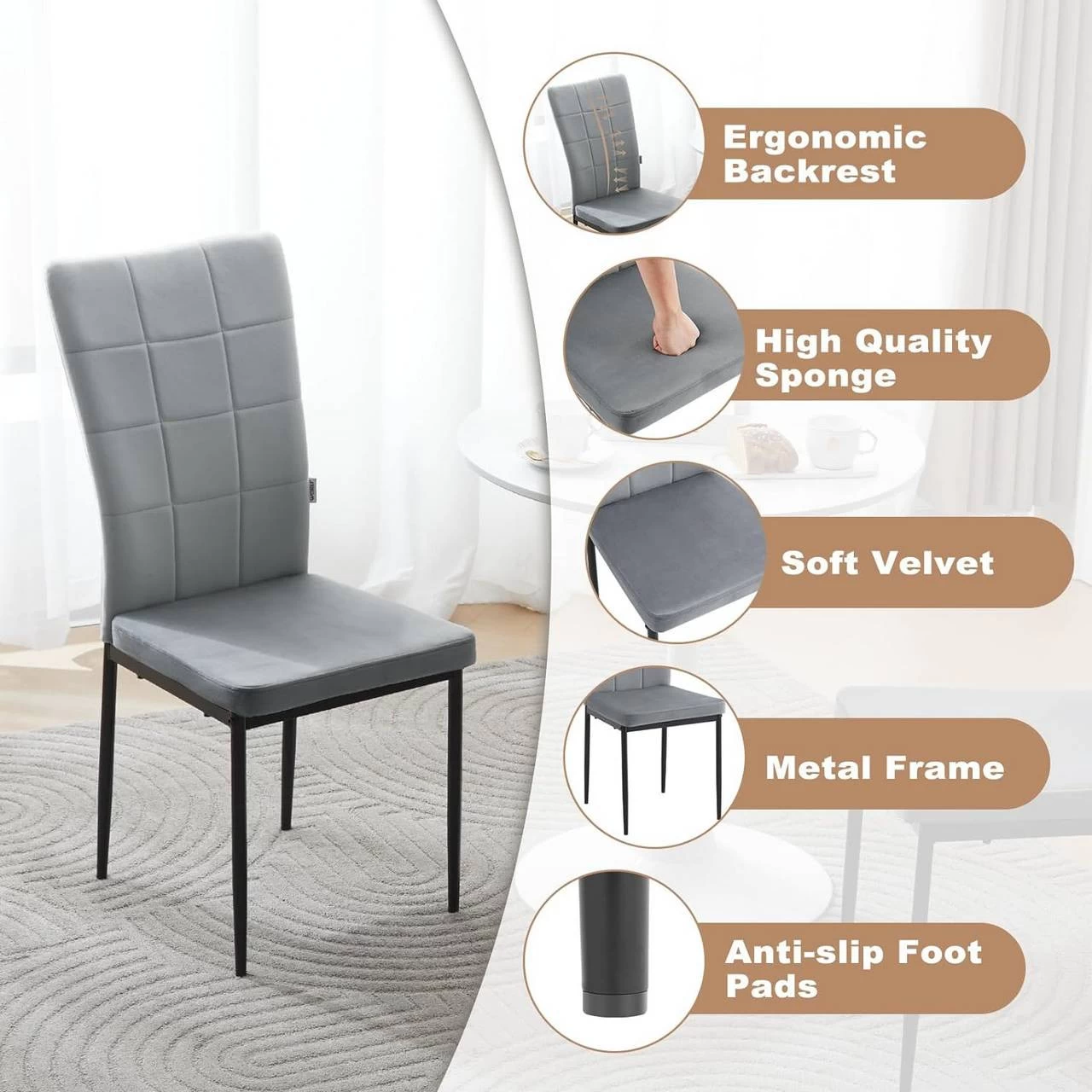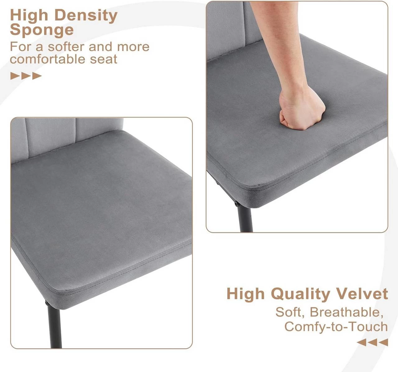 Hautfreundlich & Atmungsaktiv: Weicher, atmungsaktiver Samtbezug und hochdichte Schaumstoffpolsterung erhöhen den Sitzkomfort des Esszimmerstuhls.