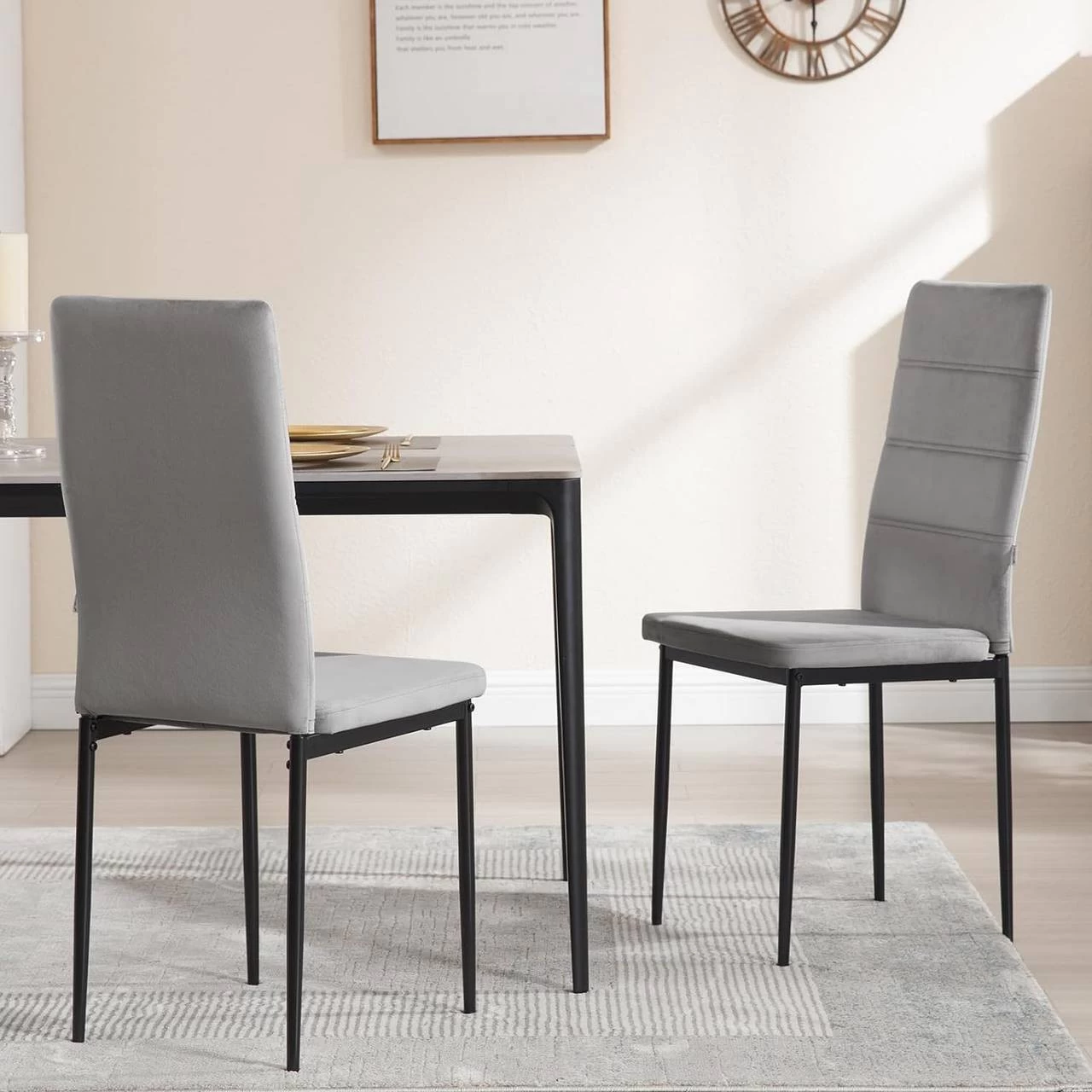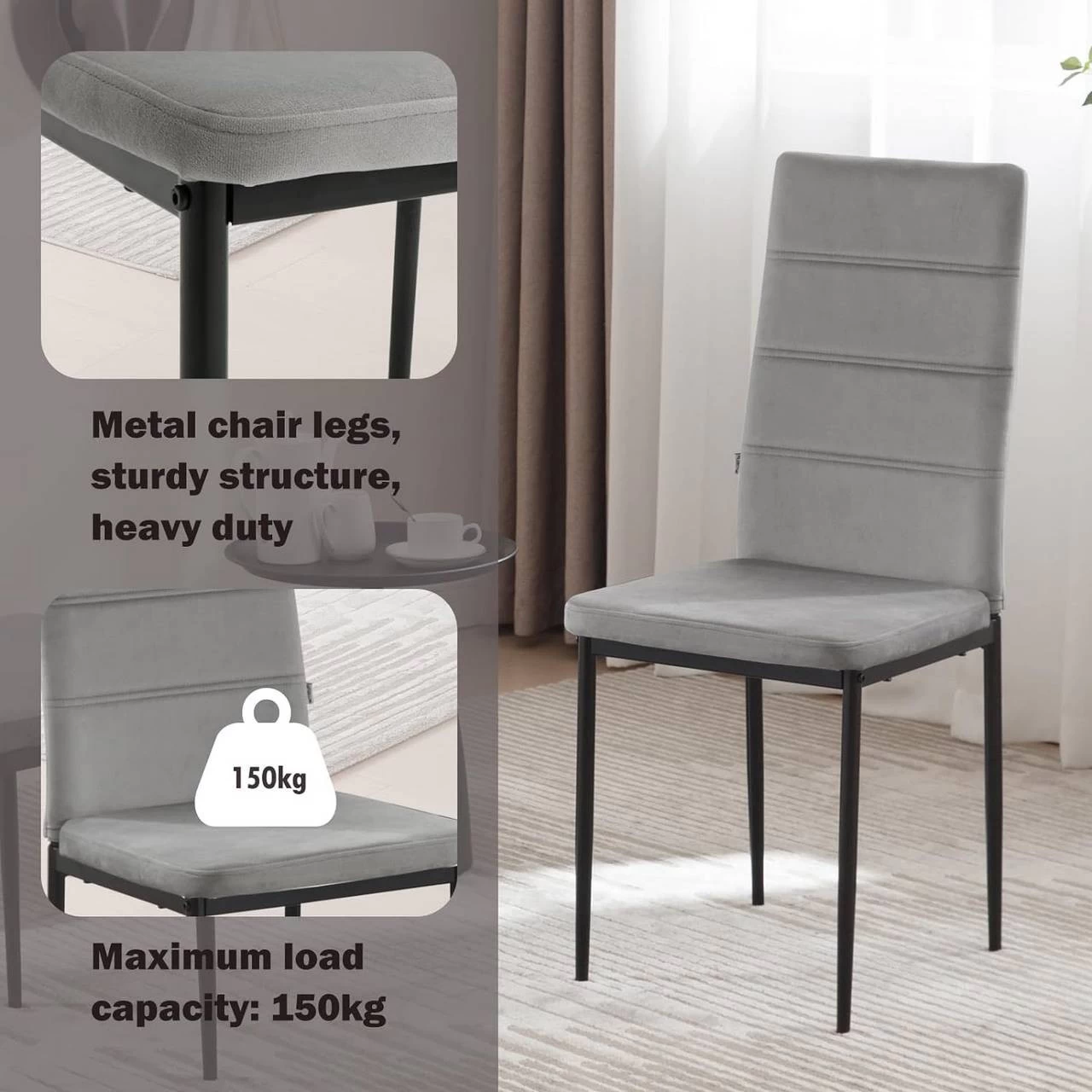 - HOHE QUALITÄT & LANGLEBIGKEIT: Mit gespritzten Metallbeinen ist der Esszimmerstuhl stark, stabil und kann 150 kg tragen. Die mit Samt bezogene Sitzfläche und Rückenlehne sind hautfreundlich, weich, abriebfest und pflegeleicht.
