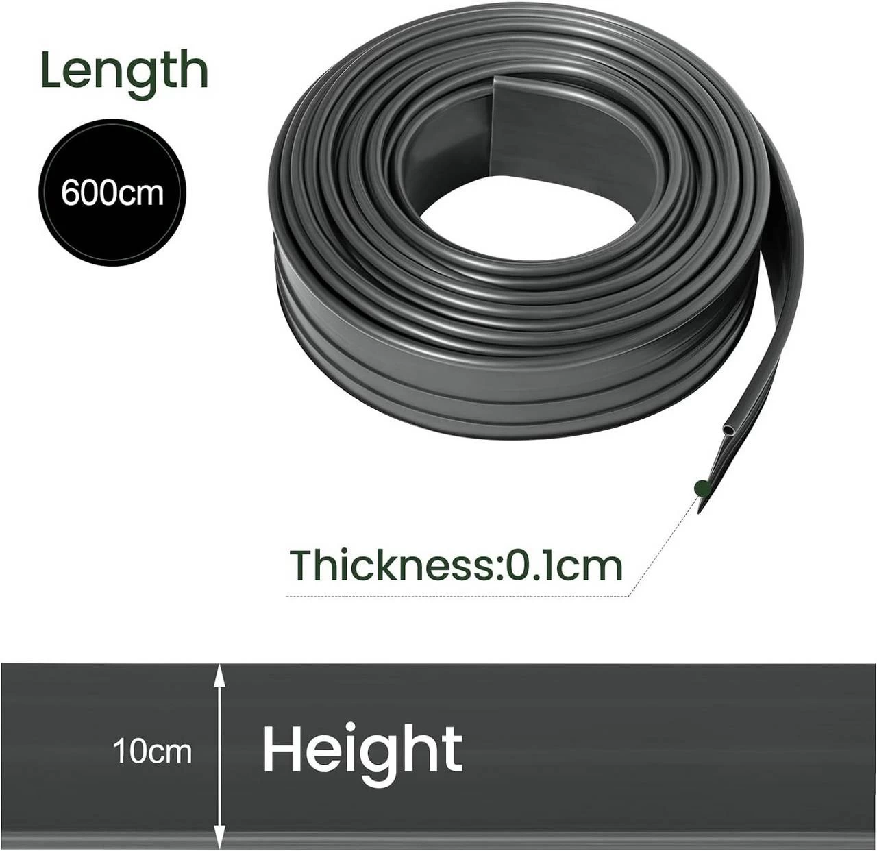 - WITTERUNGSBESTÄNDIG: Aus hochwertigem PE-Material ist die Rasenkante robust, strapazierfähig und hält verschiedenen Wettereinflüssen stand. Sie ist zudem zu 1,5 % UV-beständig und behält so immer ihre Farbe und Festigkeit. Also, eine langlebige Lösung für eine ordentliche und ansehnliche Einfassung.