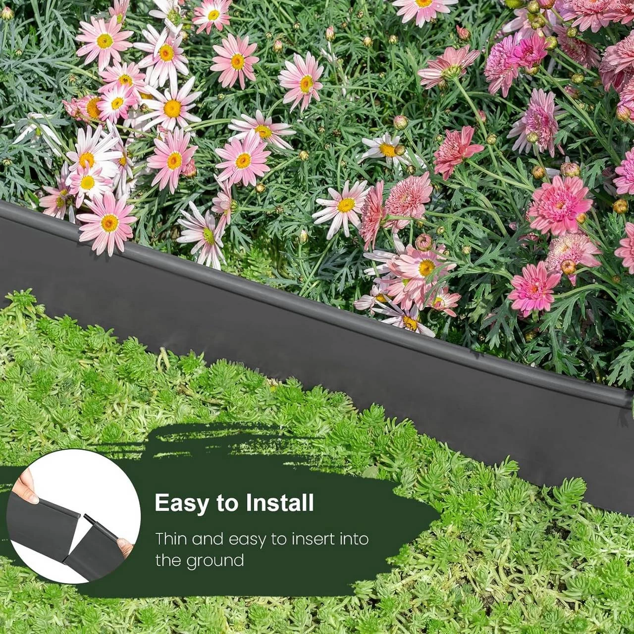 - STAY-IN-PLACE DESIGN: Die beiden Längsverstärkungen und die verstärkten Ränder sorgen dafür, dass die Beeteinfassung immer senkrecht und fest im Boden steht, ohne zu verrutschen oder sich zu verbiegen.