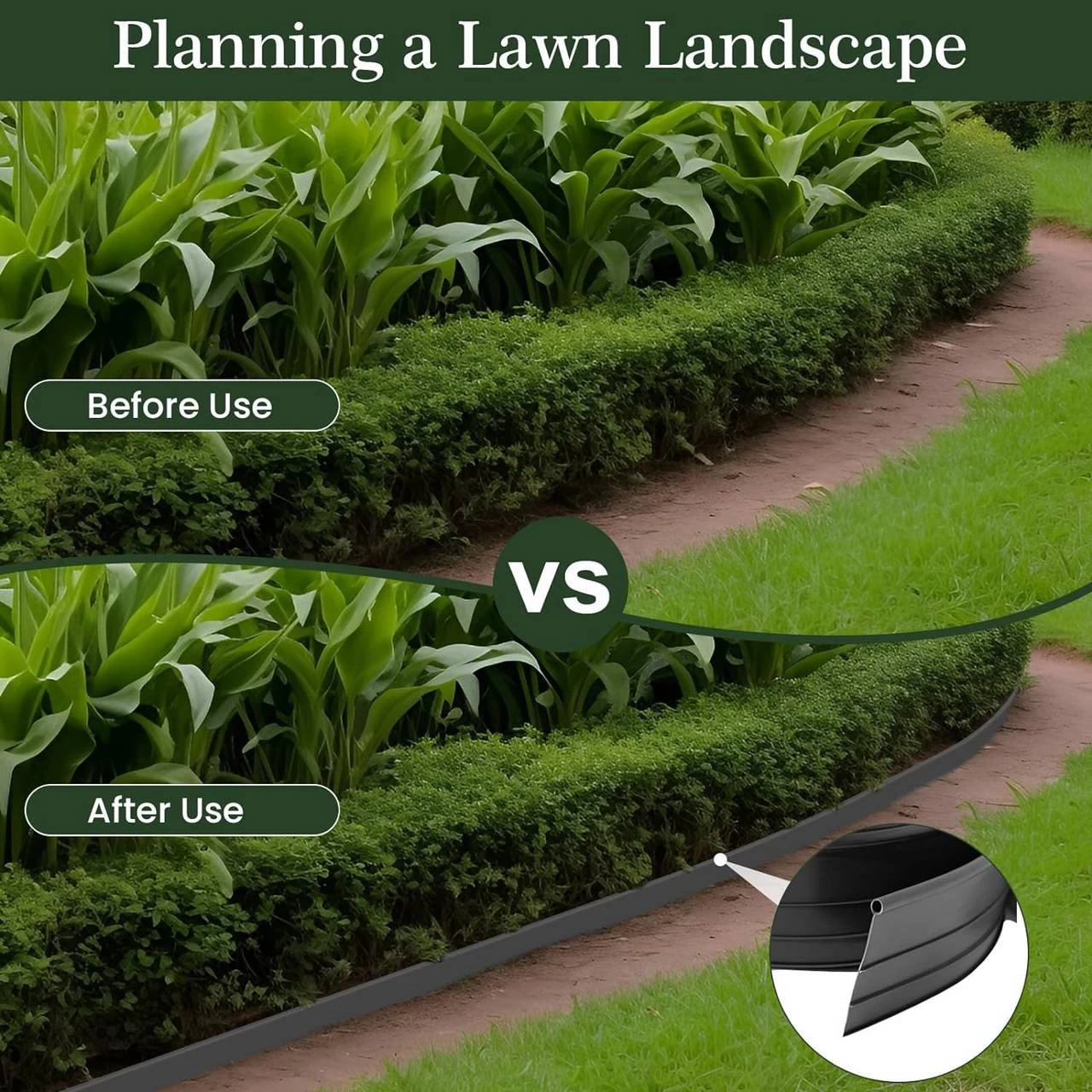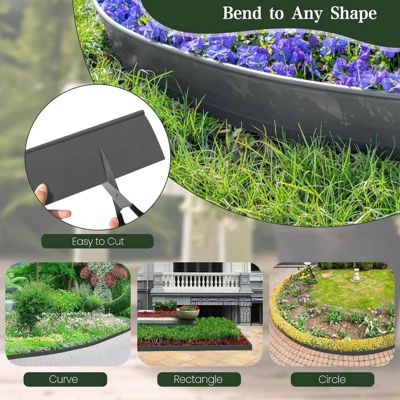 Biegbar: Die flexible Beeteinfassung lässt sich leicht biegen und formen, passt problemlos geraden, kurvigen oder unregelmäßigen Strecken an und liegt zugleich enger an den Rasen.