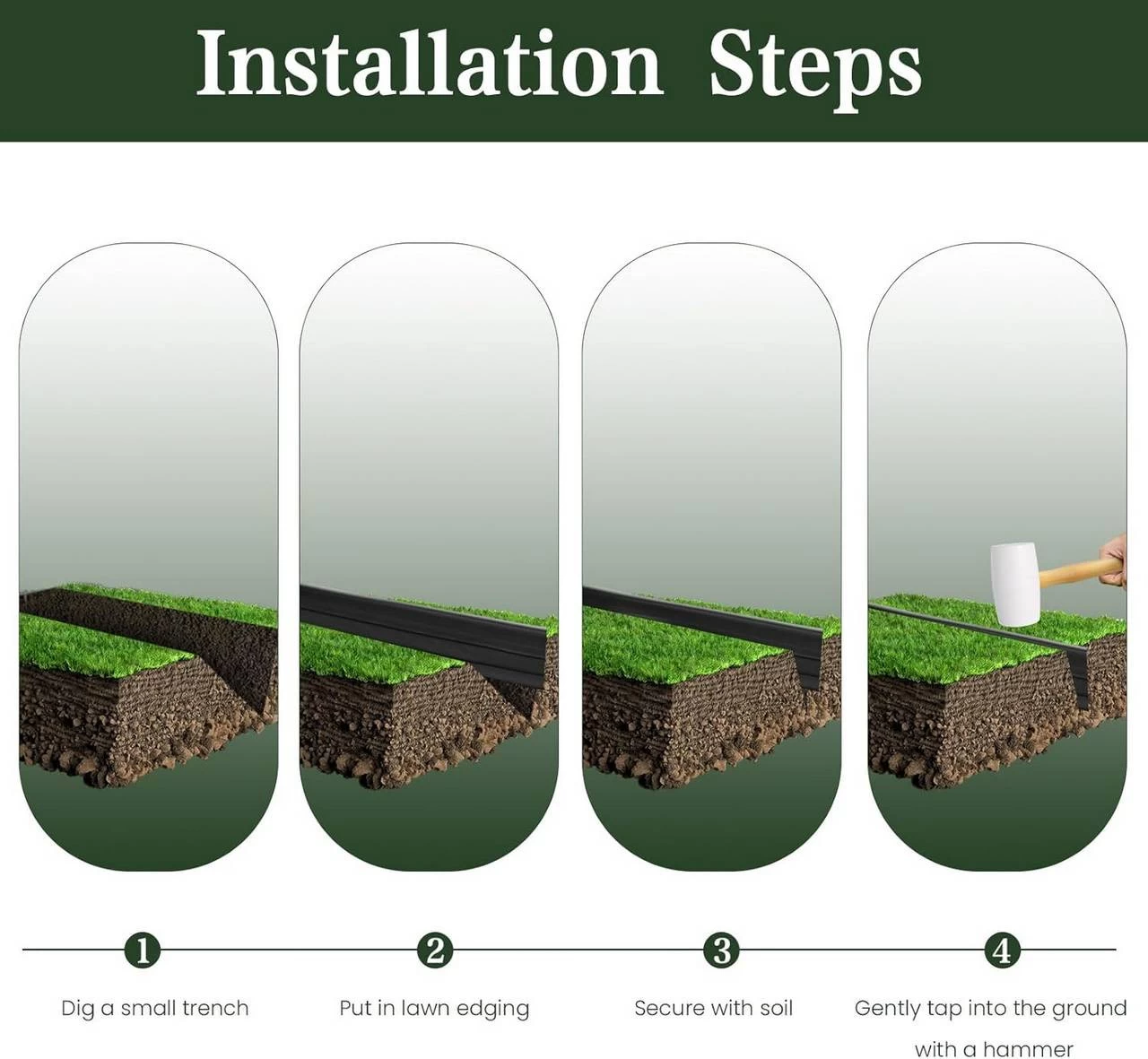 - LEICHT ZU VERLEGEN: Einfach die Rasenkante abrollen, in die vorgelassene Rinne einbringen, die Erde drandrücken und fertig. Dabei schützt die runde Oberkante Ihre Hände wirksam vor Schnittverletzungen.