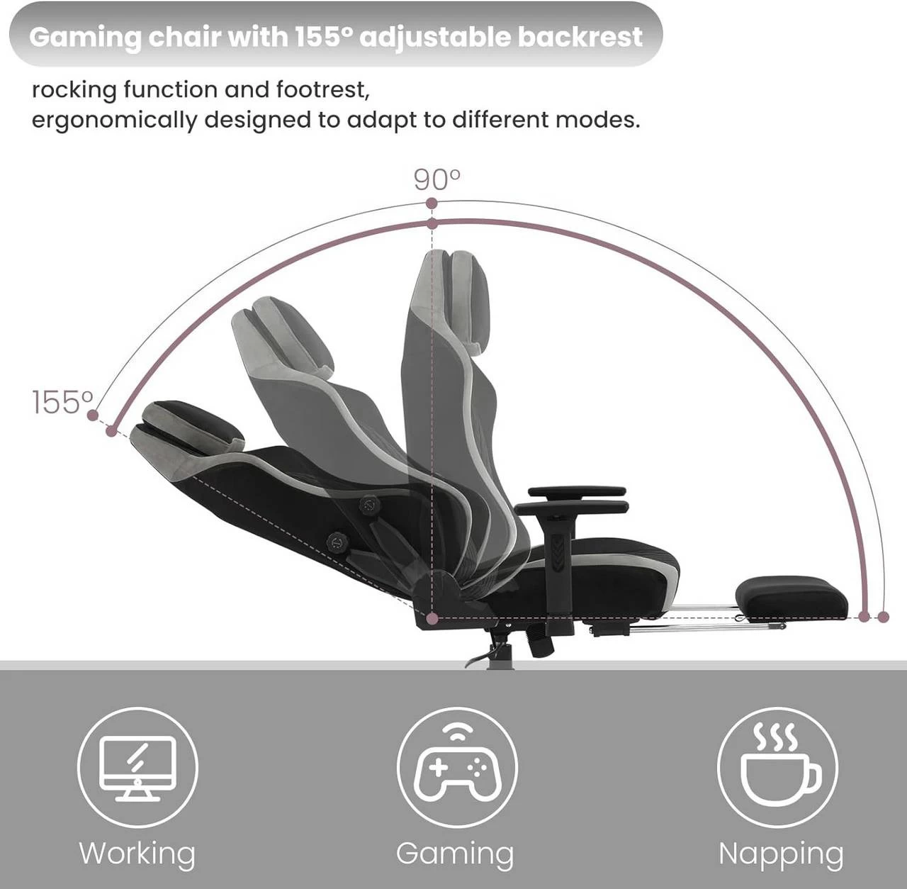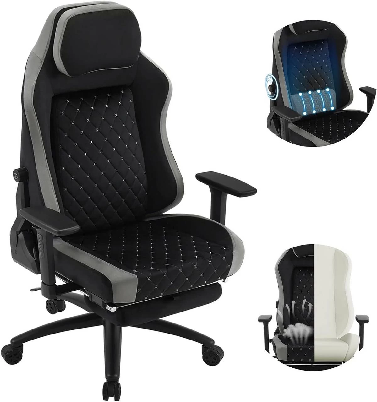 - MULTIFUNKTIONAL: Mit einer um 90-155° neigbaren Rückenlehne, einer einziehbaren Fußstütze, einer 3-19°-Wippfunktion und einem exquisiten Rautenmuster kann dieser verstellbare Stuhl als Bürostuhl, Gaming-Stuhl, Schreibtischstuhl, Loungesessel usw. verwendet werden, sodass Sie leicht die passende Haltung für gewünschte Funktion finden.