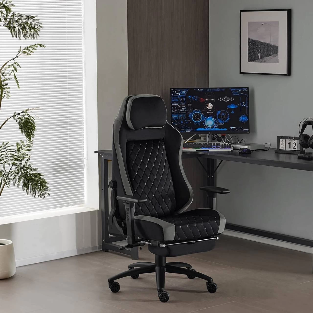 - 1x Gaming-Stuhl mit Fußstütze