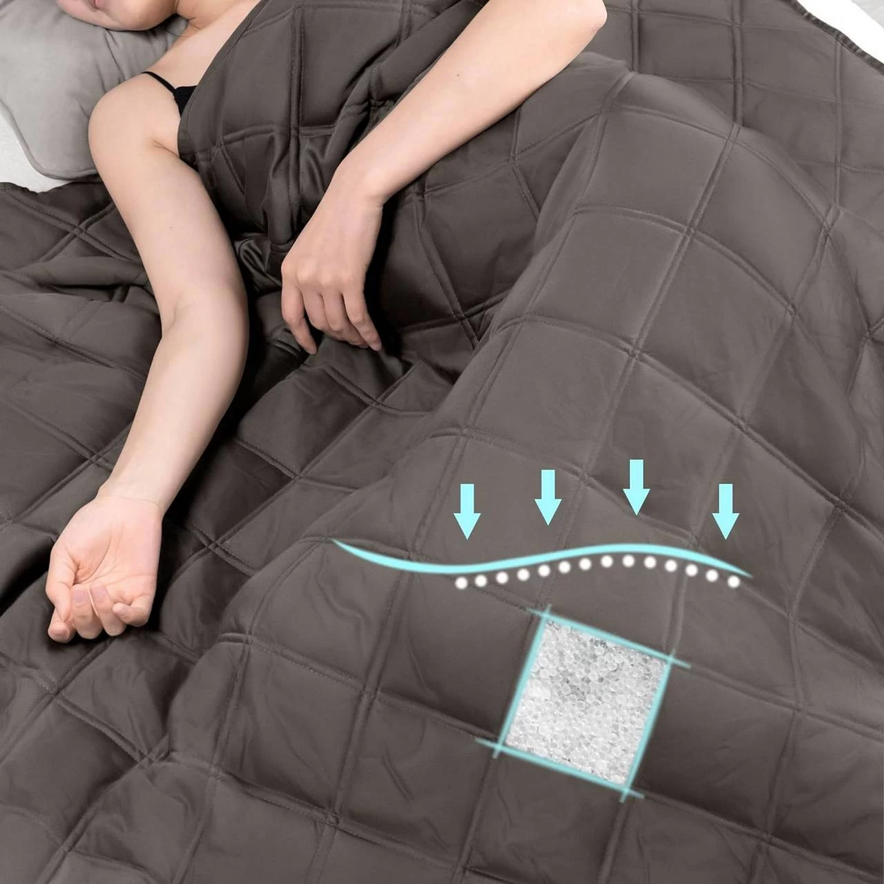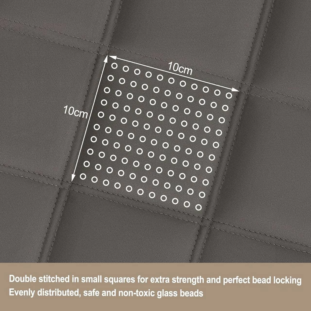 - GUTE VERARBEITUNG: Die Therapiedecke ist in kleinen Quadraten (10x10cm) mit Doppelfaden genäht, um eine feste und gleichmäßige Verteilung der inneren Glasperlen zu erzielen. Die Bänder an den 4 Ecken erleichtern das Befestigen des Bettbezugs.