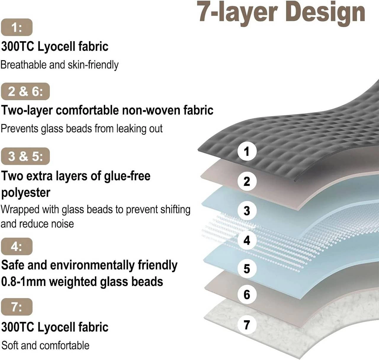 - 7 Lagen Design: Diese graue Bettdecke ist mit sicheren und umweltfreundlichen Glasperlen gefüllt. 2 Lagen bequemer Vliesstoff und 2 Lagen klebefreies Polyestergewebe umschließen die Glasperlen fest, damit diese nicht verrutschen.